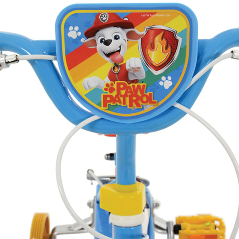 The perfect first big bike for any Paw Patrol fan, with colourful character graphics, the 12-inch bike comes complete with shaped plaque, stabilisers and a durable steel frame. Featuring brightly coloured decals, shaped plaque and components, the officially licenced bike with character favourites is ideal for visual development! Stabilisers can be removed as core coordination, strength and skill improve. The 12-inch puncture-proof EVA moulded wheels with mag wheel inner provides extra stability and the deep tread tyres offer a strong yet comfortable ride with excellent grip. Both saddle and handlebars are adjustable in height to suit children as they grow and gain in confidence and a soft saddle and hand grips provide additional comfort whilst learning. With safety in mind, the character-printed chainguard is fully enclosed while the front and rear calliper brakes provide efficient stopping.