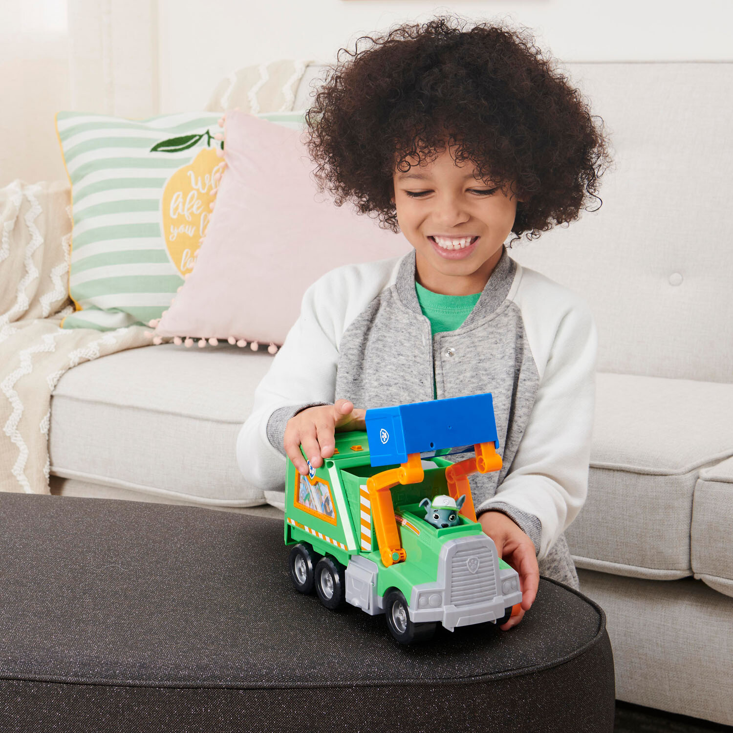 Perfect for any little Paw Patrol fan, this Paw Patrol Rocky Road Recycle Truck is sure to delight kids as they help out their favourite Paw Patrol characters on the job. The bright and colourful truck includes a moving dumping element so your child can put the recycling from the bin on the front into the lorry! Easy to push along the floor and coming with a figure of Rocky too and a variety of accessories, this set is ideal for encouraging imaginative play at home or on the go.