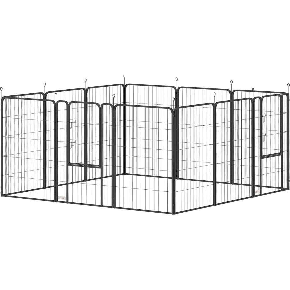 Create a safe haven for your large dog to play, relax and explore with this versatile black 12-panel dog exercise pen, designed for both indoor and garden use. Customise the layout into a square, rectangle or L-shape to fit your home or outdoor space, while the heavy-duty solid steel construction and 12 ground stakes ensure stability and durability for even the most energetic large breed dogs. Two built-in doors with secure latches offer easy access and peace of mind, and when it's time to tidy up, the pen folds flat for effortless storage until the next play session.