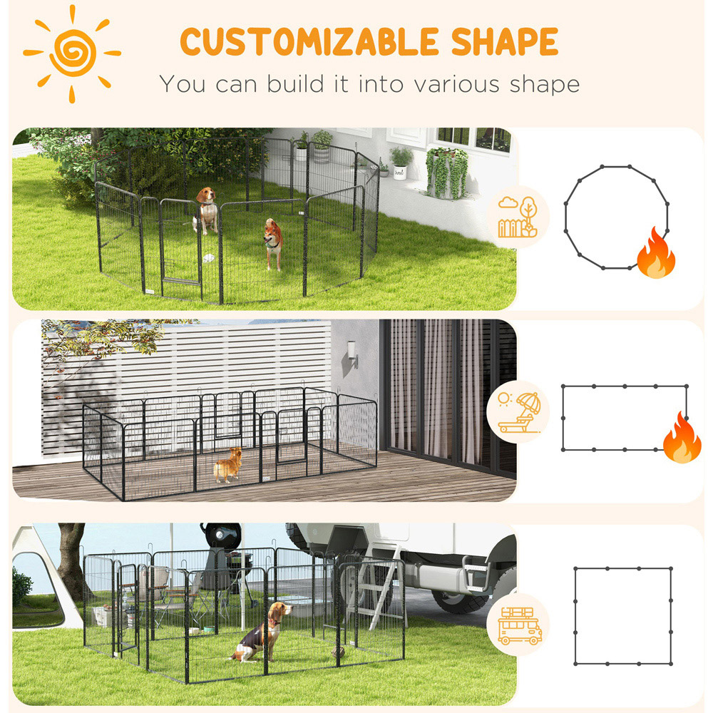 With this PawHut dog playpen, pets have a safe space to be themselves, whilst giving you peace of mind. With 12 panels, it's flexible and spacious, providing lots of room to roam, play and relax – pets won't feel boxed in. Features ground stakes that go into the ground for stability, you'll set this playpen into different shapes to fit your layout, whether it's inside or outside. For pets, it's freedom and security, and for you, it's knowing they're safe and sound, with lots of space to enjoy.