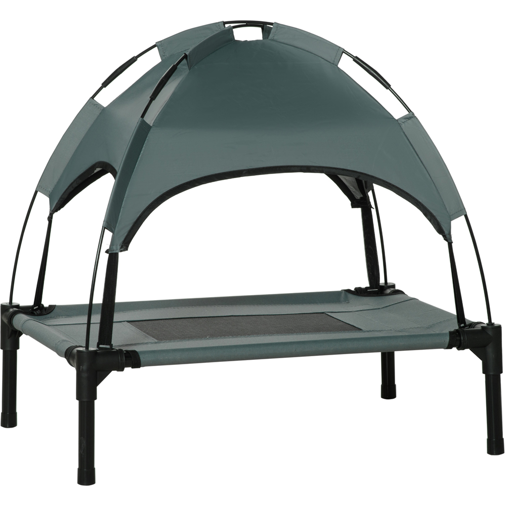 Create a cosy resting spot for your pet dog with the PawHut 61cm Grey Elevated Dog Bed with UV Protection Canopy. It is crafted using a solid metal frame with an elevated dog bed that keeps your pet dog 18cm off the ground and increases air circulation. It features a removable, UV-resistant canopy for extra shade on hot summer days and offers protection from light rain. This elevated dog bed is ideal for keeping your pet dogs comfortable and is suitable for dogs with up to 10kg weight.