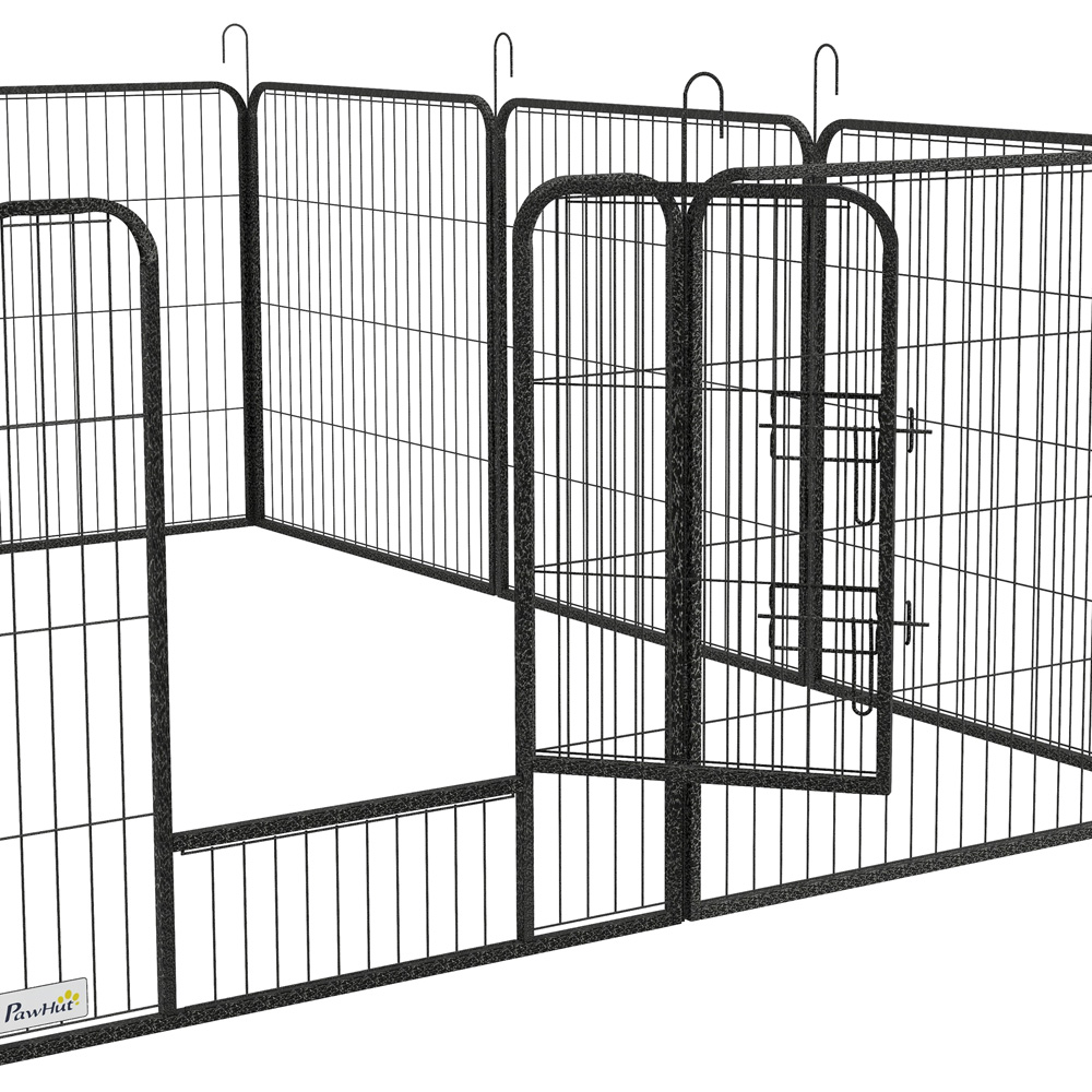 Give your furry friends a secure space to be themselves with the PawHut Black 12 Panel Metal Playpen Gate. This versatile set is constructed with sturdy steel rods, allowing you to customise its shape to perfectly fit your space. Whether you prefer a rectangular, square, or L-shaped configuration, this playpen has got you covered. It even offers the flexibility to be separated into two sections for added convenience. The spacious design provides ample room for pets to roam, play, and unwind without feeling confined. Boasting ground stakes for stability, you can rest assured that your pets are safe and secure indoors and outdoors. The inclusion of step-through doors ensures easy access, while the secure locks keep pets in place when required. This playpen offers the perfect combination of freedom and security for your pets, giving them peace of mind knowing that they have plenty of space to move around safely.
