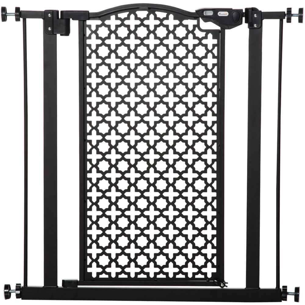 PawHut Black 74-80cm Stair Pressure Fit Pet Safety Gate with Double Locking