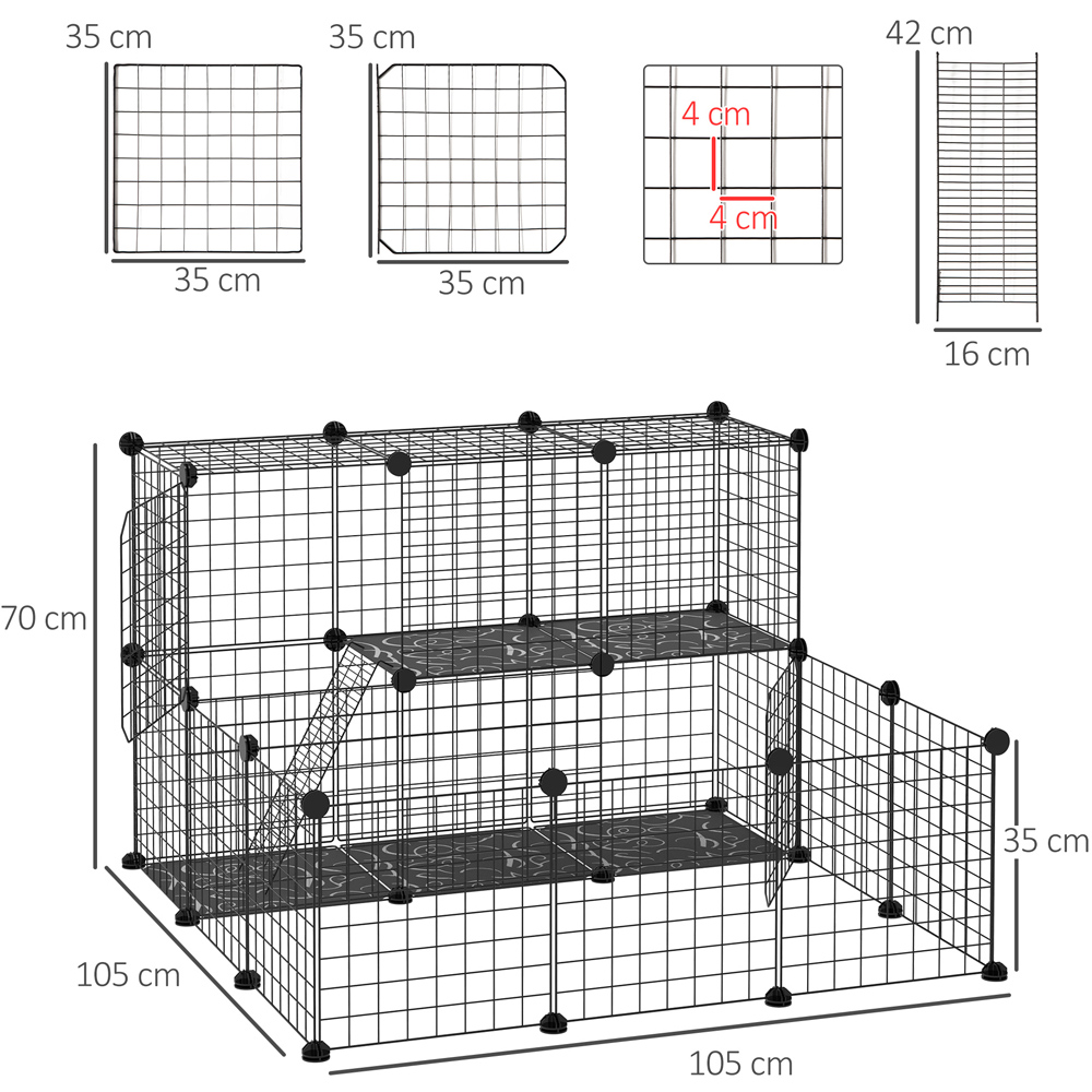 Provide a spacious home for your pets with this PawHut Expandable C and C Small Animal Cage in black. Being expandable, it can be configured into various shapes and sizes. Also, a second cage can be added to create more space or multiple floors, whilst the multi-angle connectors make it simple to set up and take down. Thanks to its open and visible design, you can keep watch on your pet from all angles. Made using metal wire to create a cosy and spacious environment, it's perfect for guinea pigs, chinchillas, and similar animals.