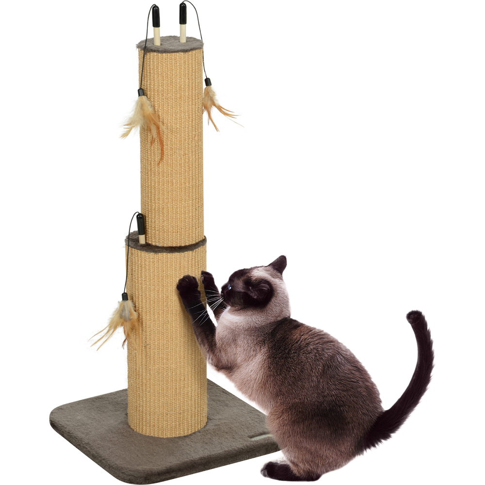 Keep your feline friend entertained with the PawHut cat scratch post for indoor cats! This 2-in-1 design not only features a robust scratching post wrapped in jute but also comes with three playful toy feathers. Suitable for indoor cats, this kitten scratching post meets your kitty's natural scratching instincts and provides a great spot for a good stretch.