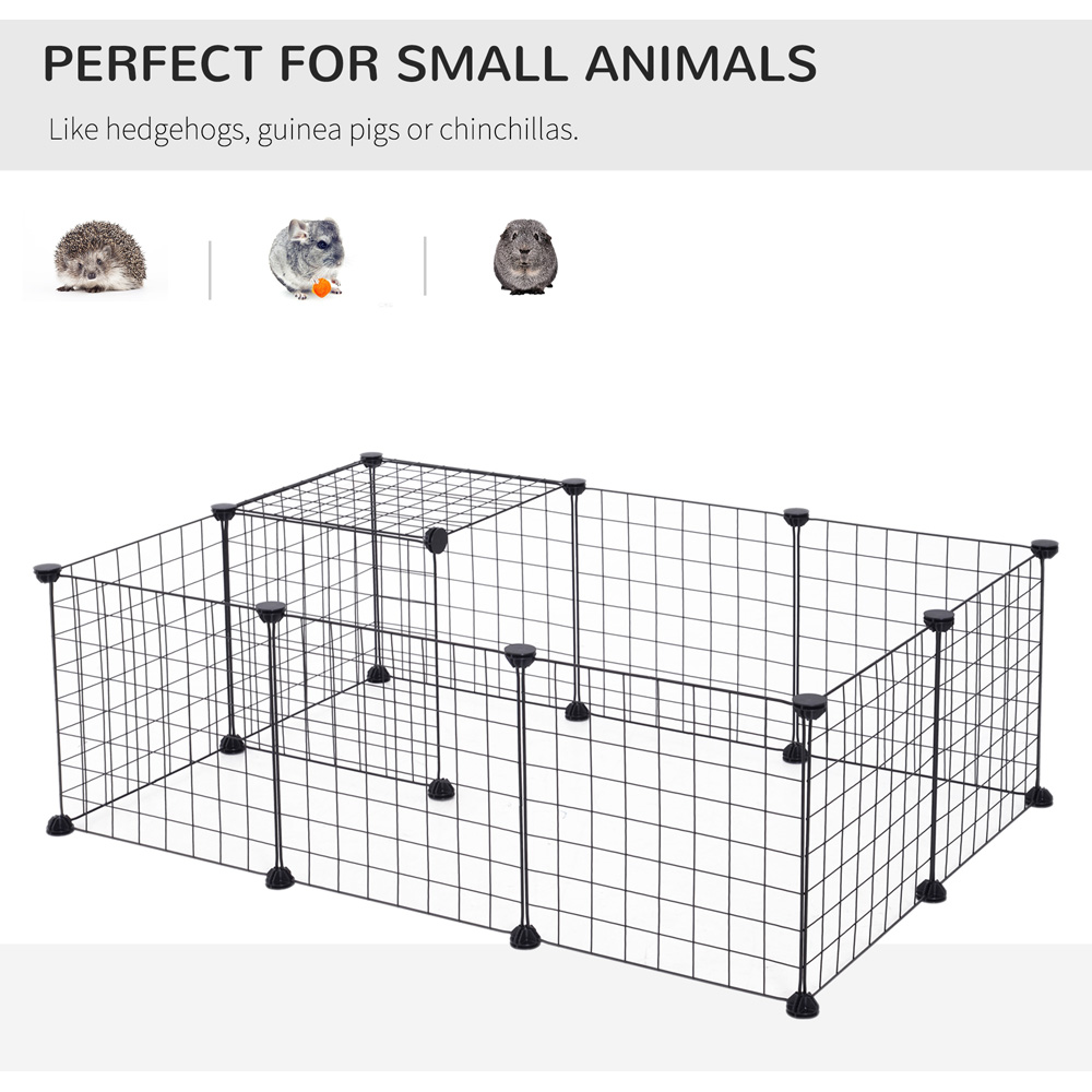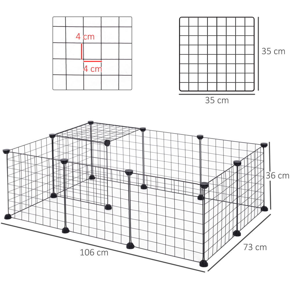 Introducing the PawHut DIY Pet Playpen Metal Wire Fence, a versatile enclosure perfect for small animals like guinea pigs. Crafted from sturdy metal with rounded edges, this cage ensures the safety of your pets while providing them with ample space to move around comfortably. Its customisable design allows you to set it up according to your preferences, and it can be easily connected and secured. This durable cage not only enhances the strength and stability of the cage over time but also protects both your animals and yourself from harm. Setting up and taking down this chinchilla cage is a breeze.
