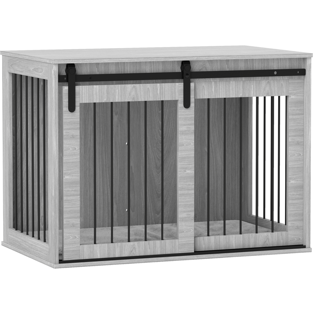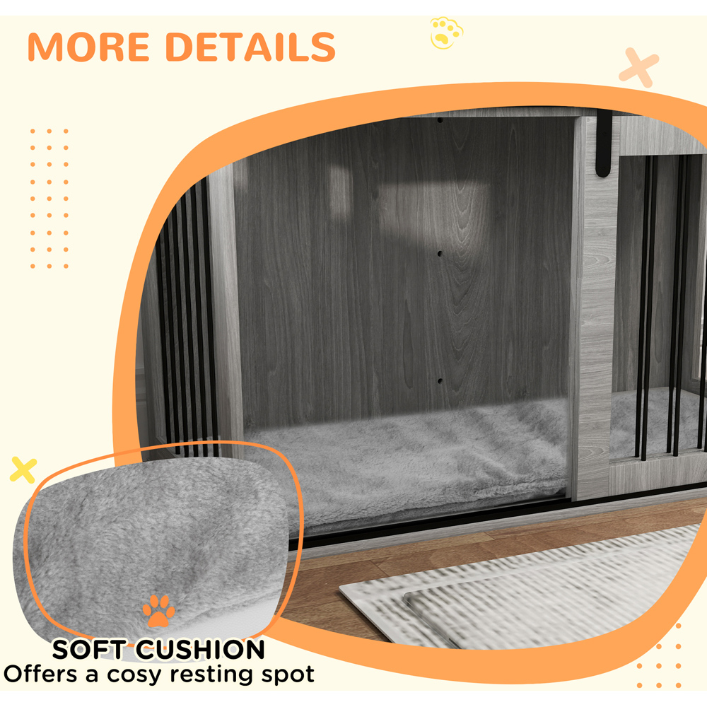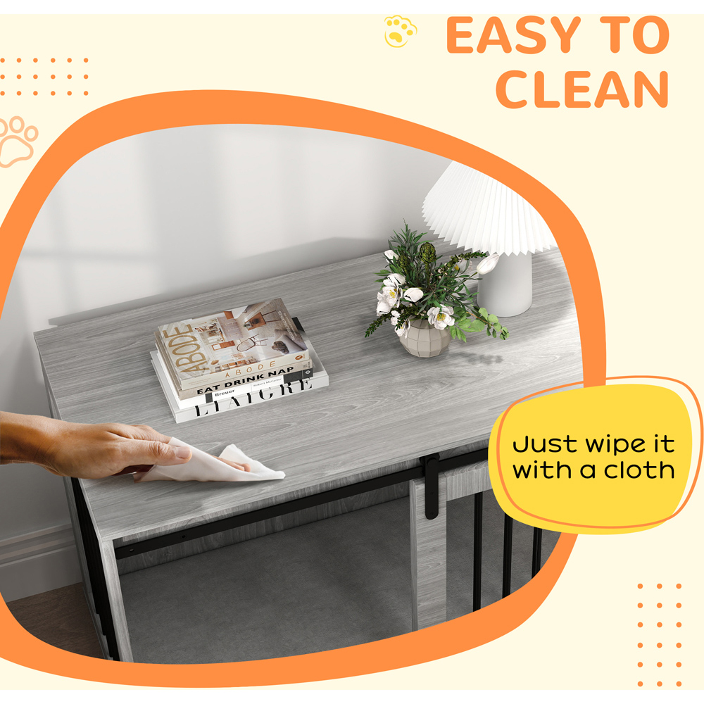 Experience the perfect blend of luxury and practicality with the PawHut Grey Large Dog Crate. This must-have piece of furniture is designed for pet owners who value both style and functionality. The washable cushion provides a cosy retreat for your pet, while the well-spaced bars ensure optimal ventilation. The secure latch keeps your furry friend safely inside when needed. More than just a cage, this dog crate doubles as a chic side table, allowing you to display your favourite items. Whether you're entertaining guests or stepping out, you'll have peace of mind knowing your canine companion is safe, snug, and secure.