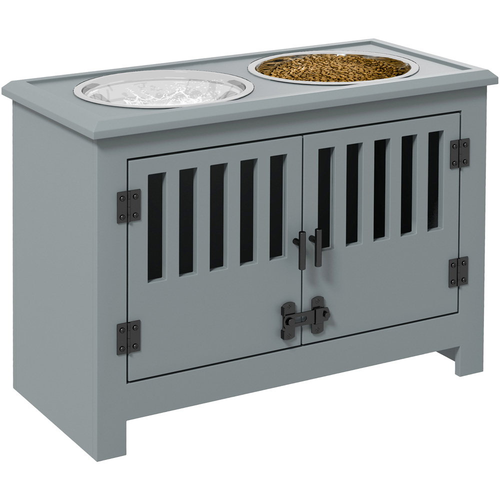 Upgrade your large or older dog's dining experience with the PawHut Grey Stainless Steel Twin Bowl Raised Dog Feeder with Storage. This elevated dog feeder is designed to provide a comfortable eating and drinking environment for your furry friend. Featuring two sturdy stainless steel bowls with a generous 2000ml capacity, your pet will have dedicated compartments for food and water. The raised design prevents your pet from straining its neck and back while also making it easier for it to access its meals. Additionally, the removable bowls make cleaning a breeze. To top it off, this stylish feeder includes a hidden cabinet for convenient storage of pet supplies and an attractive design that will seamlessly blend into your living space.