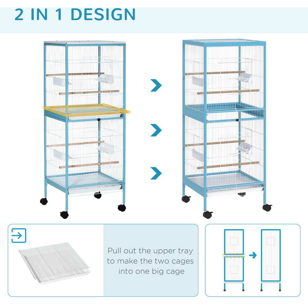 PawHut White Bird Cage with 4 Wheels