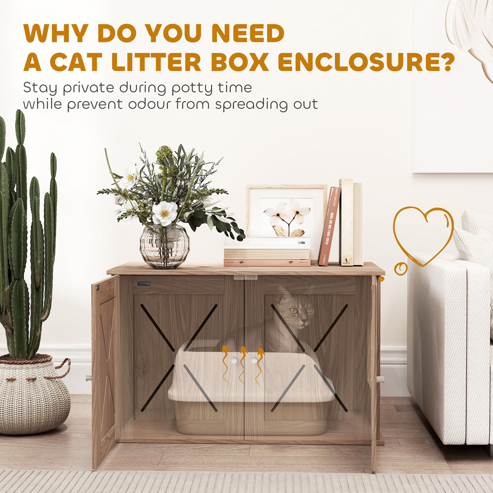 PawHut Walnut Brown Cat Litter Box Enclosure