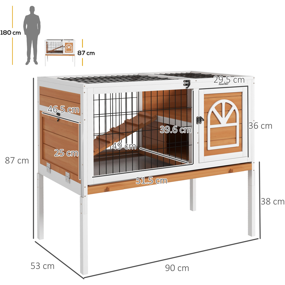 PawHut Wooden Rabbit Hutch with Openable Roof