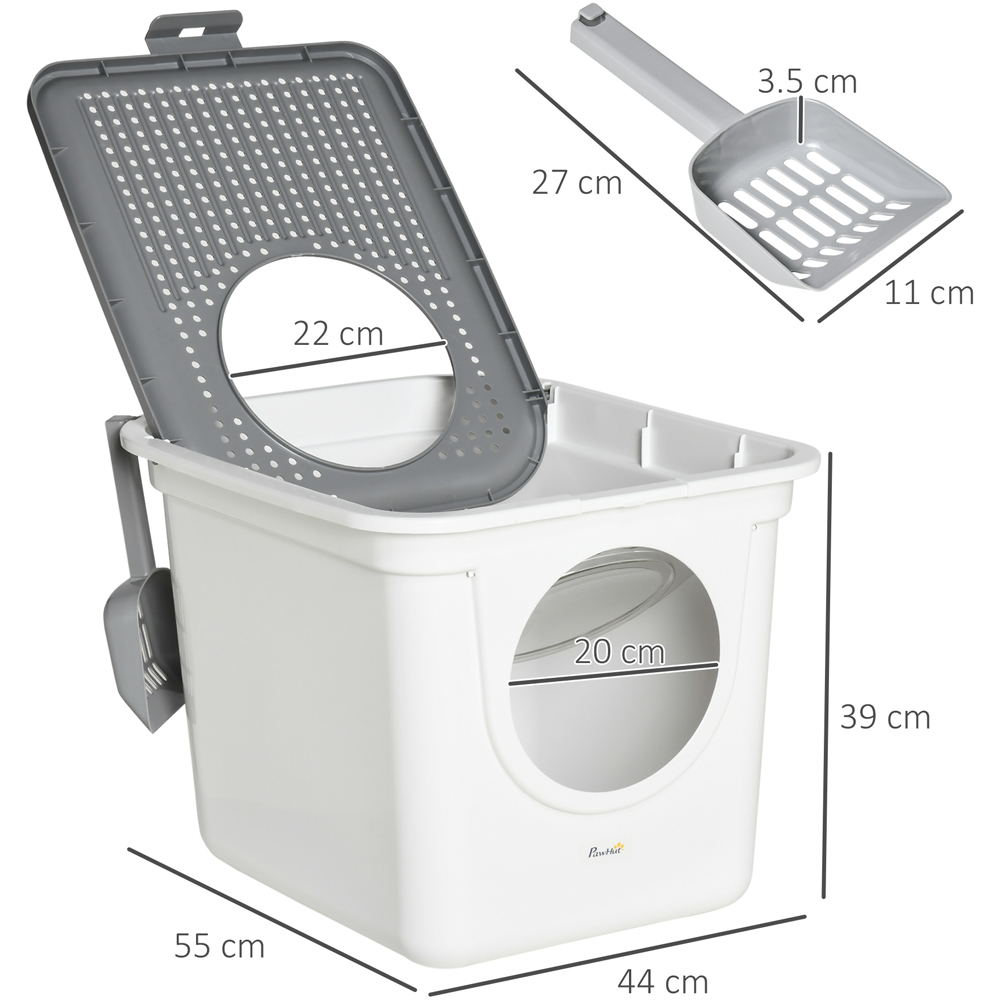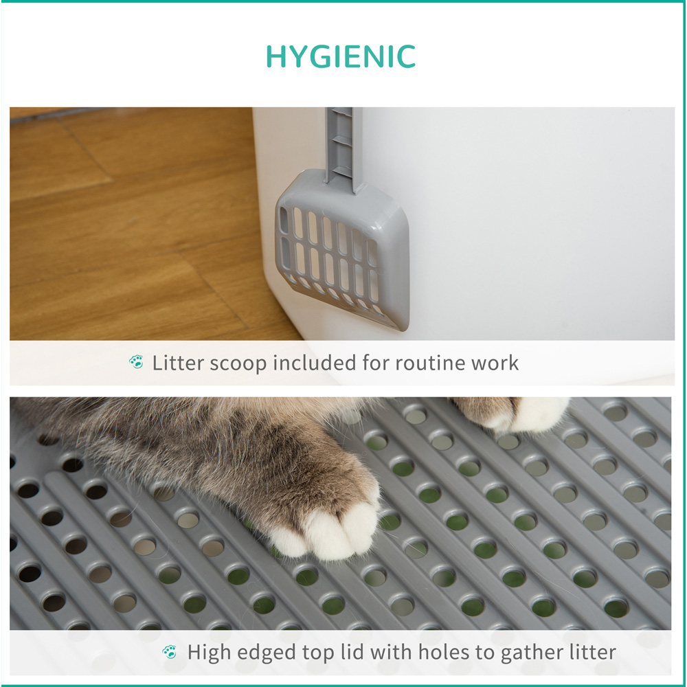 This litter box from PawHut provides pets with comfort and privacy. Your cat won't be seen, thanks to its enclosed design, which also traps unwanted odours, keeping your space smelling fresh. It allows your cat to litter in their own space, helping them feel more at ease. It's simple to get in and out – they'll enter through the front door, then exit through the top. It comes with a scoop to remove litter, whilst the openable top makes cleaning easy. Compact and stylish, it's perfect for any room.