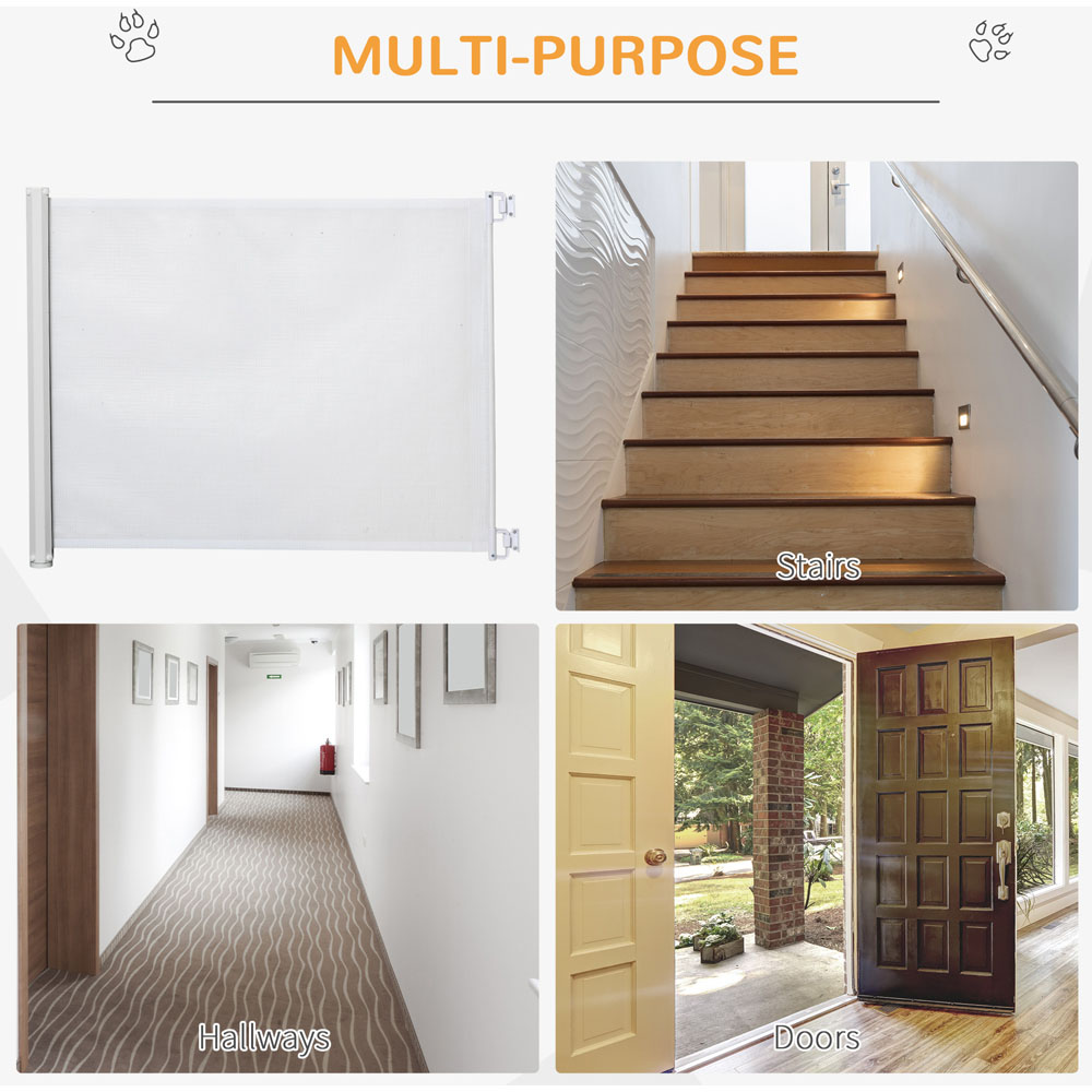 Keep your pets safe from certain areas with the PawHut White Retractable Stair Pet Safety Gate. Made from durable steel and retractable polyester cloth, this gate is designed to extend up to 115cm, making it suitable for most areas of your home. Its sleek white design adds a touch of elegance to any space. With this gate, you can have peace of mind knowing that your beloved pets are protected. The hook-type design ensures a stable installation, keeping the gate securely in place. Whether you need to install it in doorways, staircases, or hallways, this versatile gate can easily accommodate your needs. Its dimensions are 82.5 x 115cm.