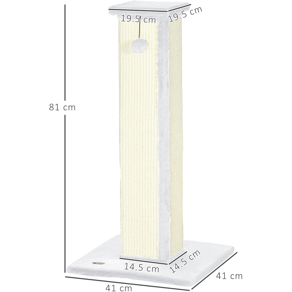 PawHut White Vertical Sisal Rope Ball Plush Cat Scratching Post 81cm