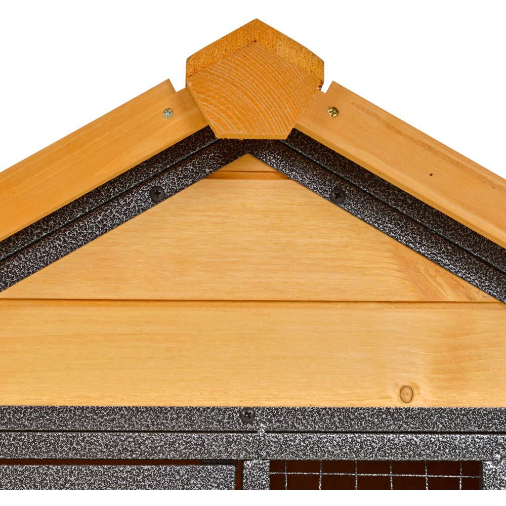 Give your pets a spacious and comfortable home with the PawHut Wood and Metal Rabbit Hutch 122 x 63 x 92cm. Your furry friends can easily move around inside and will be protected by a sturdy lockable door. The product features a cosy, house-style indoor space and spacious front courtyard area. With water-resistant paint and an asphalt roof, this house also provides shelter from UV rays. Please note: Rabbits need regular and frequent opportunities to exercise. Make sure your rabbits have opportunities to exercise every day to stay fit and healthy. Rabbits are most active in the early morning, late afternoon, and overnight, so every effort should be made to ensure rabbits have access to a large area to exercise at these times. The hutch provides shelter, while rabbits should additionally be provided with a large living enclosure.