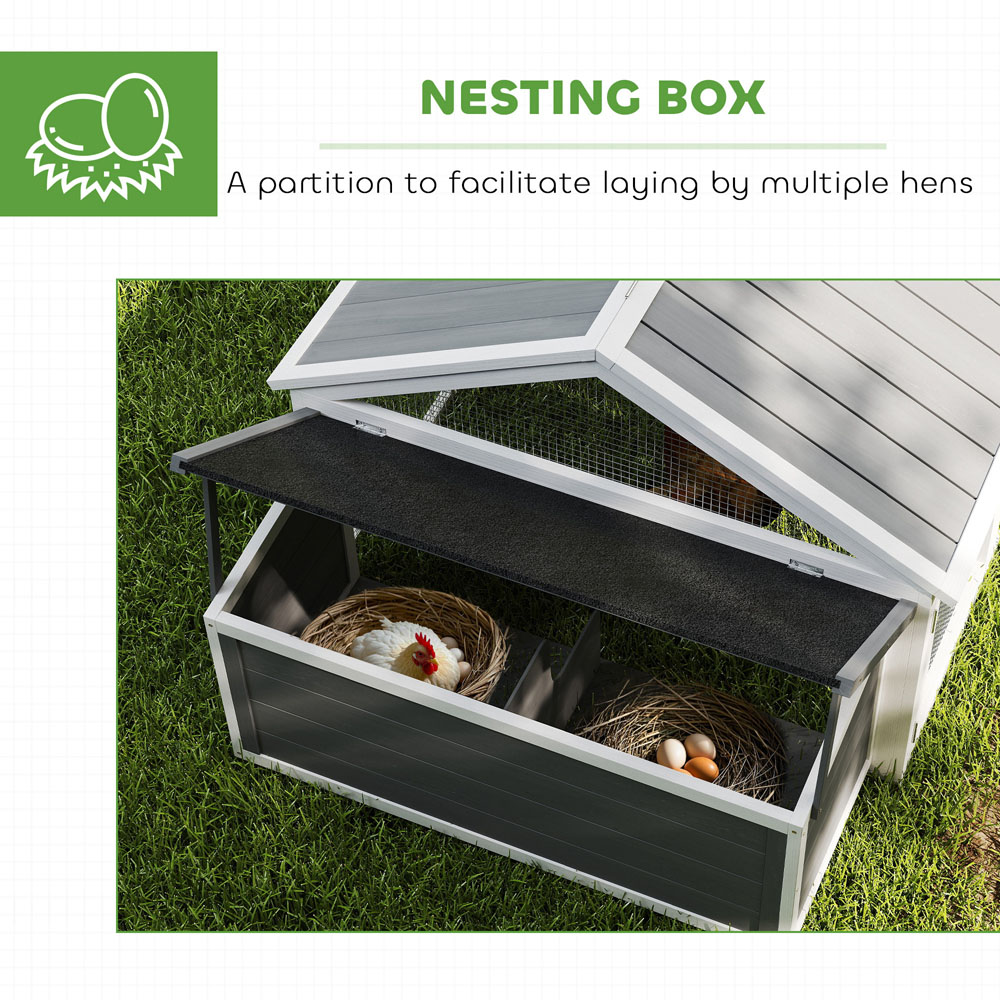 Create a welcoming retreat for your feathered friends with this wooden chicken coop, designed to offer security and comfort for up to eight small animals in any small garden. Let hens roam freely in the spacious run, while the nesting box ensures a cosy spot for laying eggs. The wire mesh enclosure keeps your pets safe and well-ventilated, and you'll find feeding and cleaning a breeze thanks to the large door and openable roof. For growing flocks, simply attach to another coop and expand their home. This outdoor coop with a weatherproof roof stands out as a practical solution for pet owners in the UK and ROI looking for a white chicken run with a secure enclosure.
