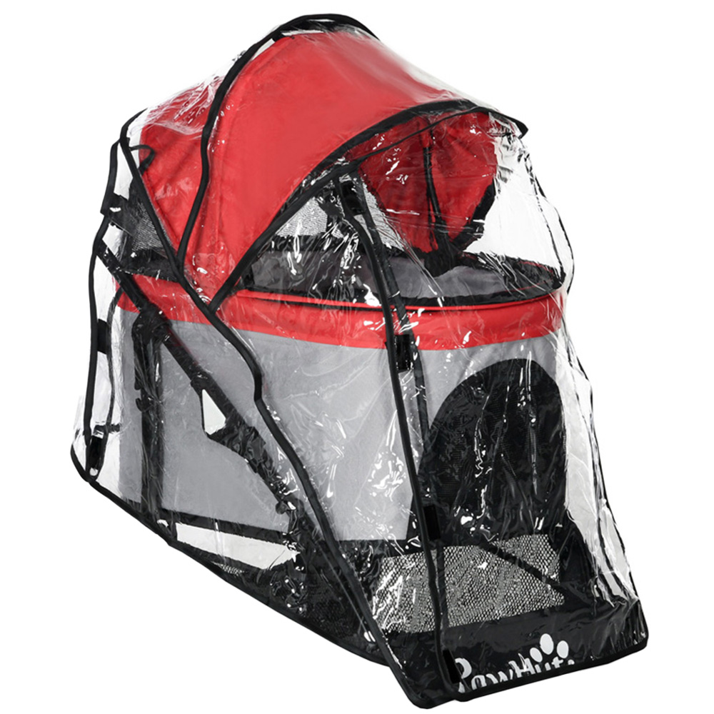 Ensure your pet stays dry and comfortable with the PawHut XS and Small Pet Stroller Rain Cover, designed for PawHut dog buggies. This cover protects against rain and bad weather, featuring a convenient hook and look fastener for easy attachment and front and rear openings for hassle-free access. Lightweight and portable, it's perfect for adventures in any weather, ensuring your pet enjoys outings without worry.