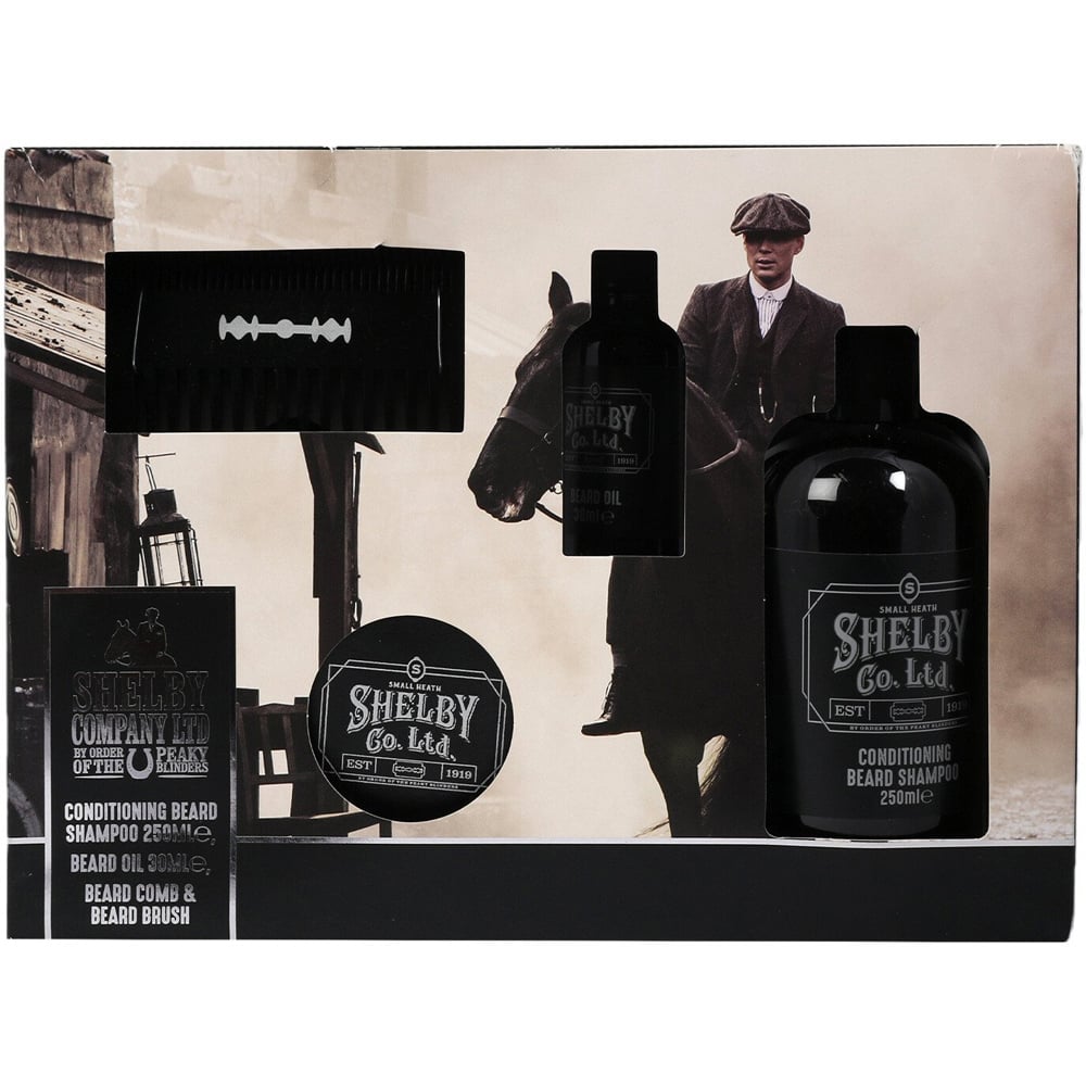 The Peaky Blinders Beard Grooming Set contains 250ml of Beard Conditioning Shampoo, 30ml of Beard Oil, and a Beard Comb and Brush. It's the perfect gift for the ultimate Peaky Blinders fan! Whether you want to maintain your Alfie Solomon bushy beard or your Arthur Shelby-style magnificent moustache, this set has everything you need. Wash your facial hair with the conditioning beard shampoo to cleanse and reduce frizz and fluff. Follow with the beard oil fragranced with the warm notes of bergamot, cinnamon and leather, and finally, use the comb and brush to style your required look.