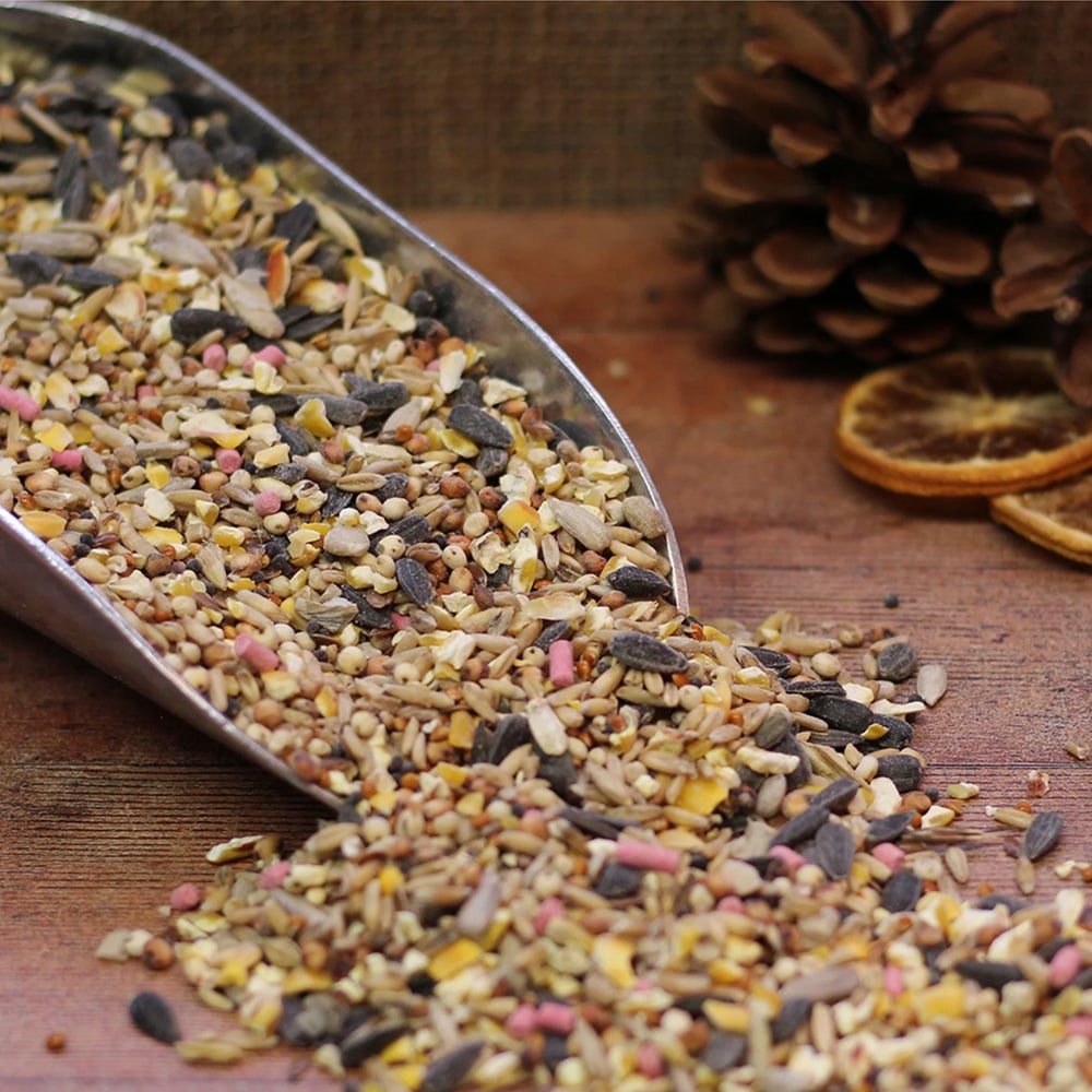 The Peckish Winter Warmer Wild Bird Seed Mix in a 12.75kg size is a fantastic choice for providing essential energy to garden birds during the winter season. This seed mix is carefully formulated with nine different ingredients, ensuring a diverse and nutritious meal for the birds. With a high fat content and enriched with our vitamin mix, it offers the perfect combination of nutrients to support the birds' well-being during the colder months when natural food resources are scarce. Containing 20% oil, this seed mix provides the necessary energy that birds need to stay warm and active. It can be used in various feeding methods, including hanging seed feeders, ground feeders, and bird tables, making it convenient for different bird species to enjoy. The seed mix comes in a handy resealable pouch, ensuring its freshness and convenience for future use.
