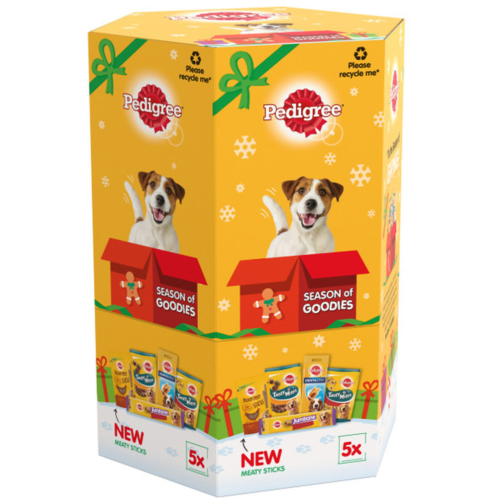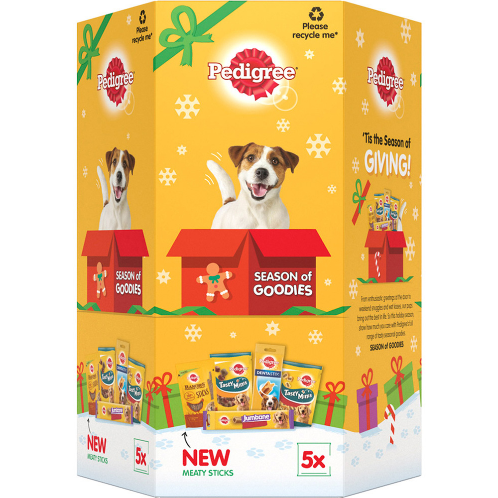 Gift your canine friend the gift of joy with the Pedigree Mixed Selection Christmas Gift Box Dog Treats 512g. This perfect gift box contains five mixed Pedigree dog treats, happily spoiling them during the festive season. It includes meaty chews and Pedigree Dentasix that support and fuel your furry partner.