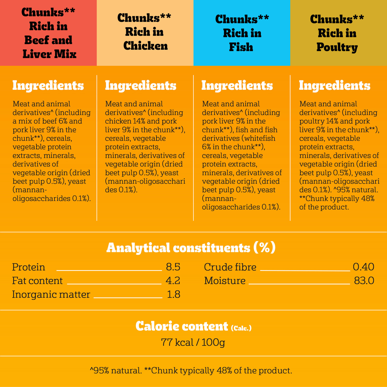 Support your dog's digestion and overall wellbeing with the Pedigree Mixed Selection in Jelly Dog Food. Made with natural ingredients, it helps keep them healthy, so they always feel their best. Packed with essential vitamins and minerals, this complete and balanced meal helps strengthen your dog's natural defences. Moreover, it contains no artificial colours, flavours, or preservatives, ensuring a natural and wholesome diet for your pet.