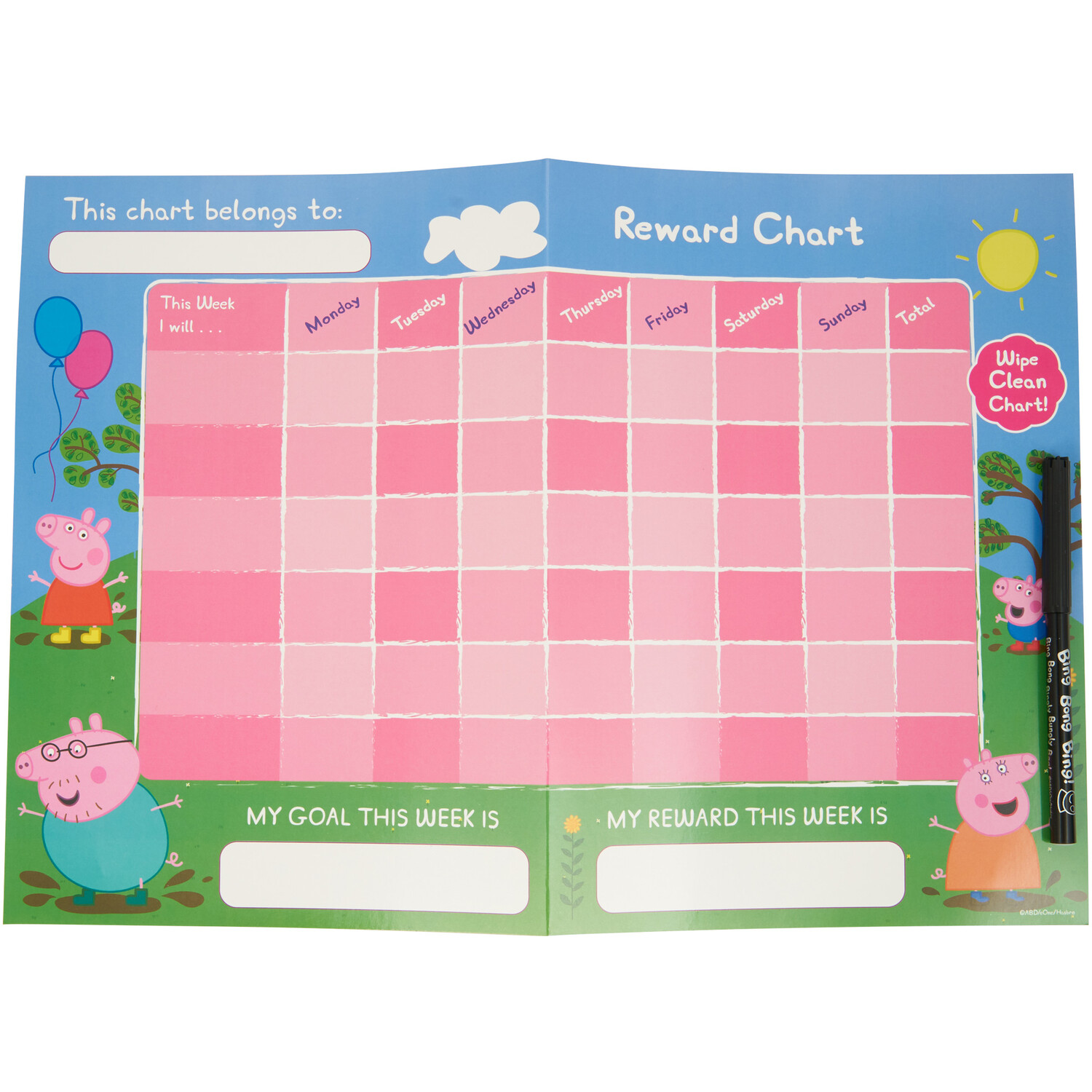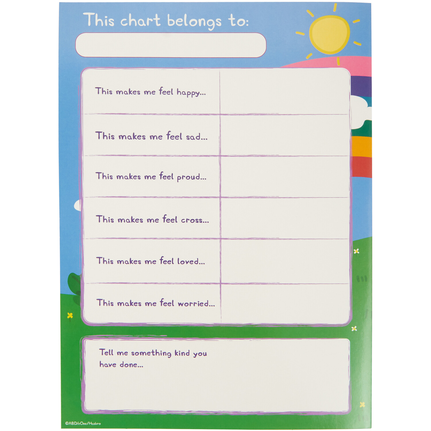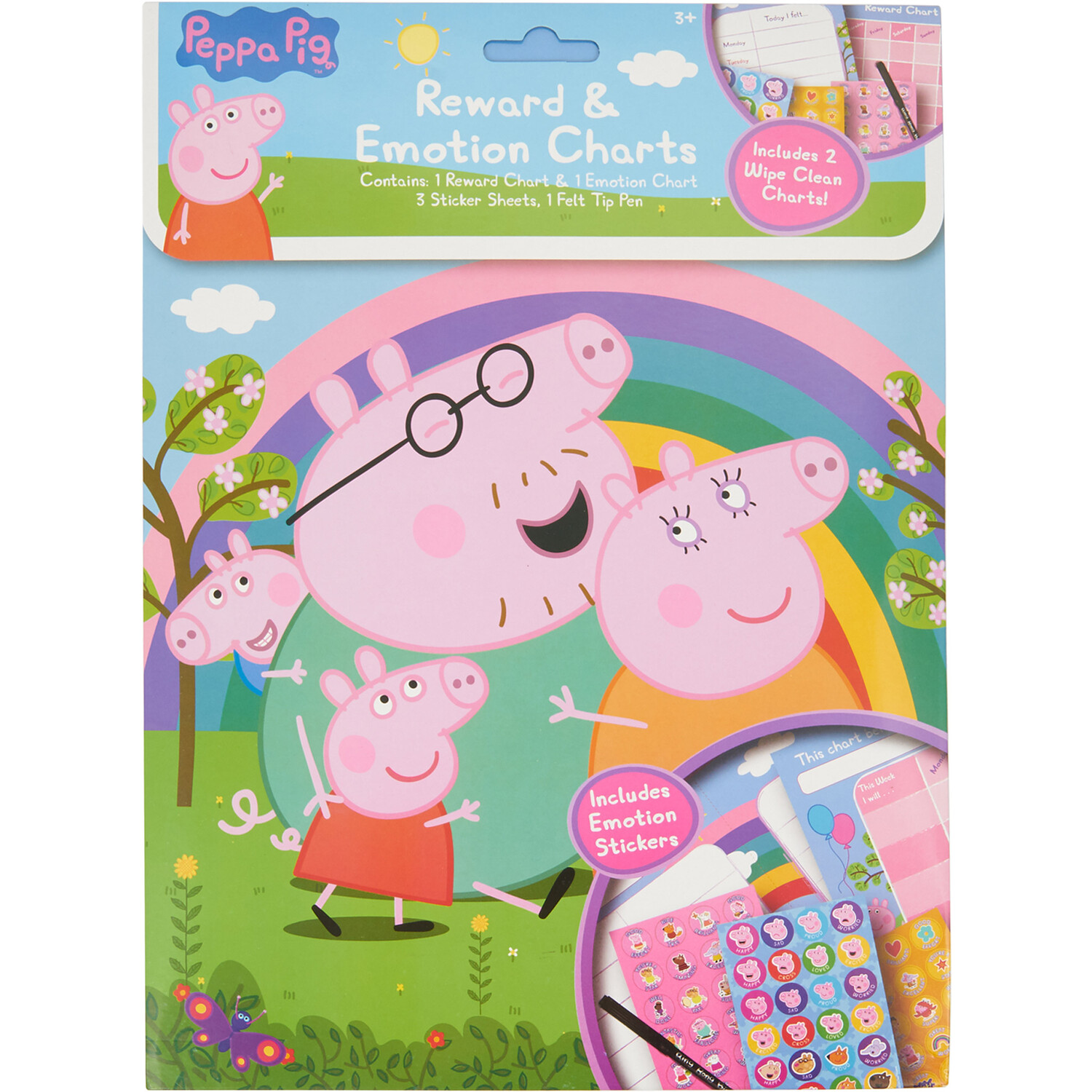 This Peppa Pig Rewards and Emotion Chart Set offers a fun way to encourage a child's positive behaviour and achievements. The set includes two wipe-clean charts, a felt tip pen and three sticker sheets. Great for praising and expressing emotions, it makes a great gift for any Peppa Pig fan.