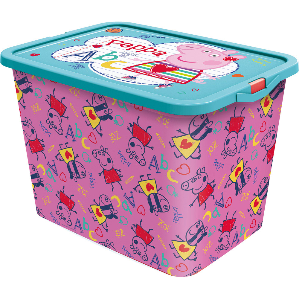 Peppa Pig Storage Boxes These three Peppa Pig storage boxes are perfect for keeping children's toys and bedrooms neat and organised. Their fun, vibrant design will brighten up any room while providing a practical storage solution. Not just for toys, these boxes are also great for storing clothing, shoes, or any other household items that need a little extra order. Crafted from high-quality materials, these boxes are designed to withstand everyday use, ensuring your belongings stay safe and protected. The click-lock lid provides a secure closure, keeping your items dust-free and organised. A must-have for every Peppa Pig fan, these storage boxes bring both fun and functionality to any space! Small: Holds 7 litres, with dimensions of H 19 x W 14 x D 29cm. Medium: Holds 13 litres, with dimensions of H 15 x W 29 x D 39cm. Large: Holds 23 litres, with dimensions of H 27 x W 29 x D 39cm.