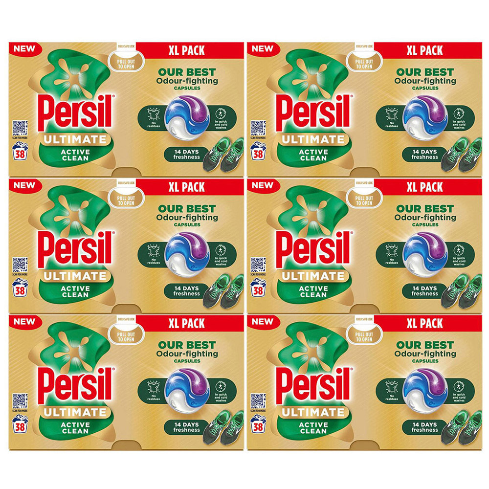 Persil XL Ultimate Washing Capsules Active Clean Stain Removal 38 Washes, 2 Pack fights odours while providing effective stain removal, wash after wash. They are Persil's best odour-fighting and fastest-dissolving capsule, even in quick and cold washes, so you can use them in the most energy-efficient programs without worrying about residue. These laundry capsules tackle stubborn stains, from pasta sauce to iced coffee to mud, and offer 14 days of freshness with FreshBurst technology to leave the whole family with fresh, clean clothes time and time again. Plus, the packaging is recyclable and plastic-free.