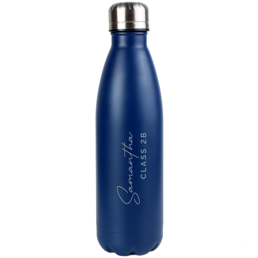 Personalised Memento 2 Lines Navy Stainless Steel Bottle 500ml