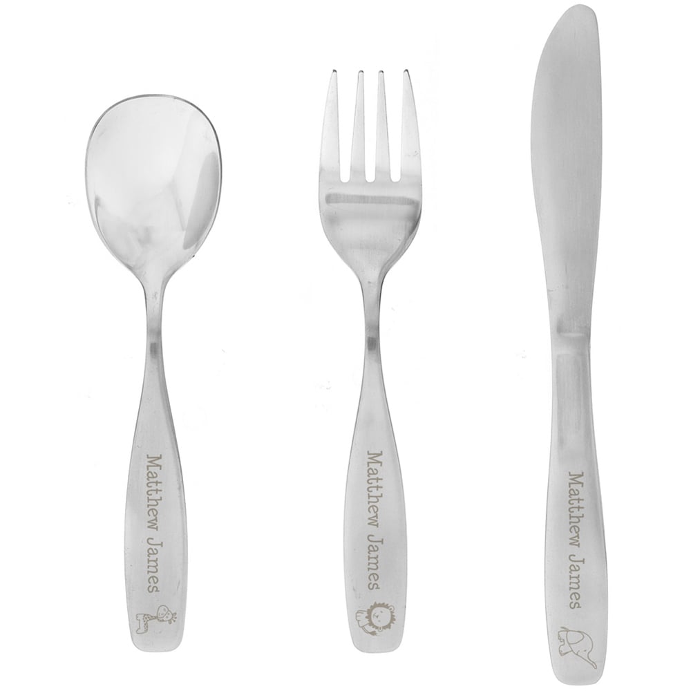 This 3 Piece Hessian Friends Cutlery Set is ideal for any animal lover. This stainless steel cutlery set can be personalised with any name up to 15 characters. All personalisation will appear as entered. Please note - Not suitable for children under 36 months. Cutlery measurements Fork 14.2cmKnife 16.8cmSpoon 13.7cmIdeal for Birthday, Christening, Confirmation, Naming Day, Baptism. When you have placed your order, you will receive an email containing a link to personalise your item. Follow the link to submit the personalised details you require. If we don't receive your personalisation within 24 hours the order will be cancelled. Please check your junk folder for the email. Once personalisation has been submitted the order cannot be cancelled or amended as it will automatically be sent into production and will be despatched within 3 working days.