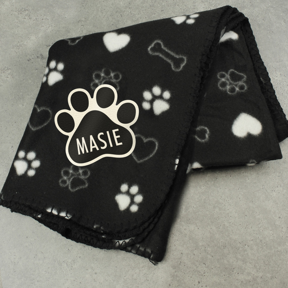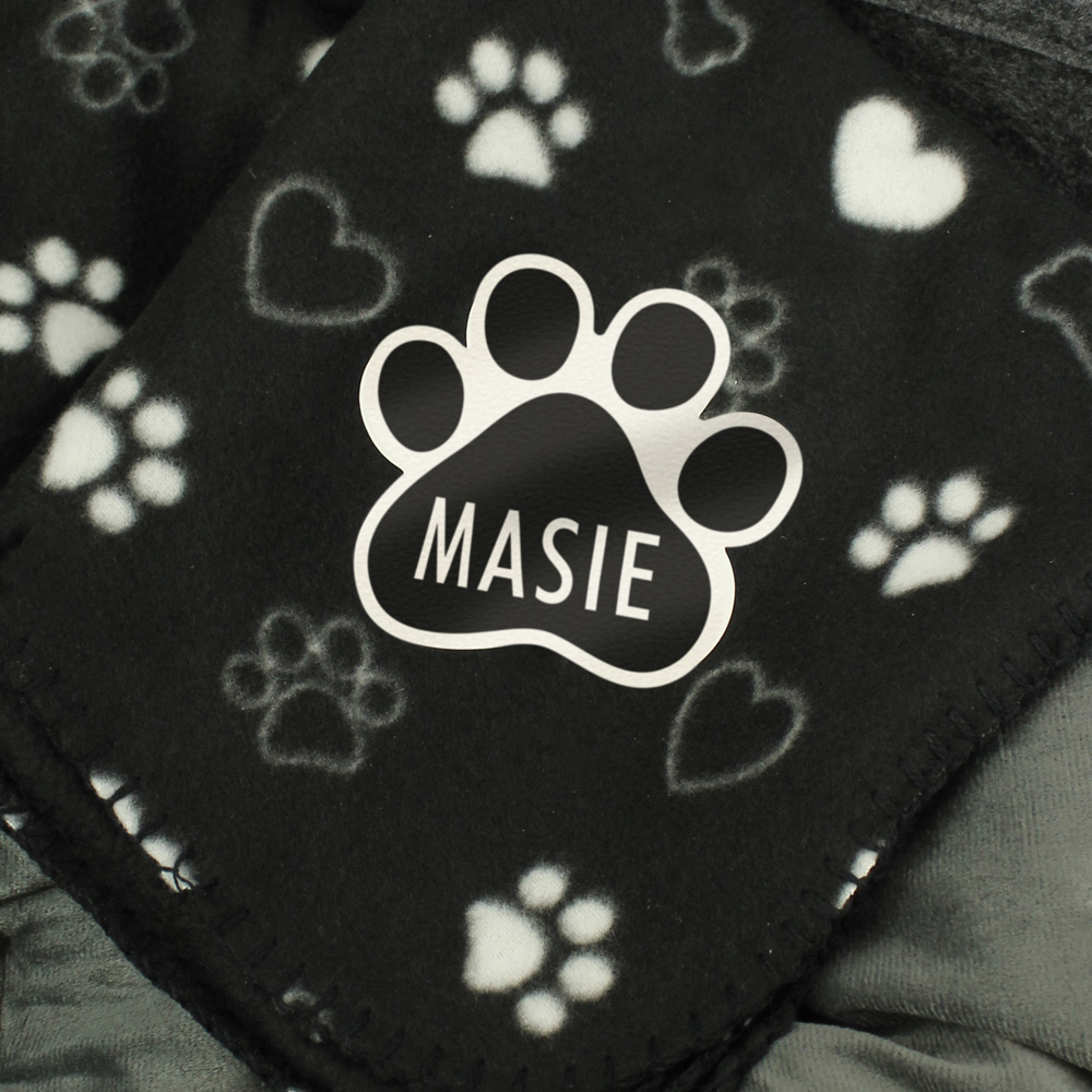 Personalise this Dog Paw Print Fleece Blanket with your dog's name of up to 15 characters. Perfect for keeping your dog warm and cosy.