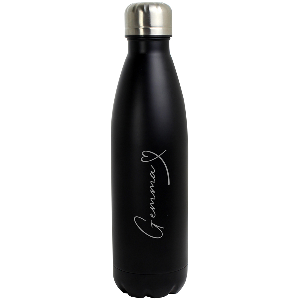 Stay hydrated on the go with our personalised heart black stainless steel 500ml double wall vacuum drinks bottle. Cut back on single plastic use with this Double-Walled Water Bottle. With its leak-proof screw cap this bottle is both stylish and handy when on the go. This flask will maintain the temperature of hot and cold drinks with a capacity of 500ml. This matte bottle can be personalised with a name, using up to 12 characters. Please note, the name is case sensitive and will appear as entered. Please hand wash this bottle only using warm, soapy water and then rinsing and allowing to dry before and after use. This flask is not suitable for storing carbonated drinks, milk or baby food. Do not put in a microwave, oven or freezer. Ideal for Birthdays, New Job, Back To School. After placing your order, an email will be sent with a link to submit your personalised details, please complete this within 24 hours to avoid cancellation. If the email isn’t in your inbox, kindly check your junk or spam folder. Once submitted, the order moves straight into production and cannot be changed or cancelled, and it will be dispatched within three working days.
