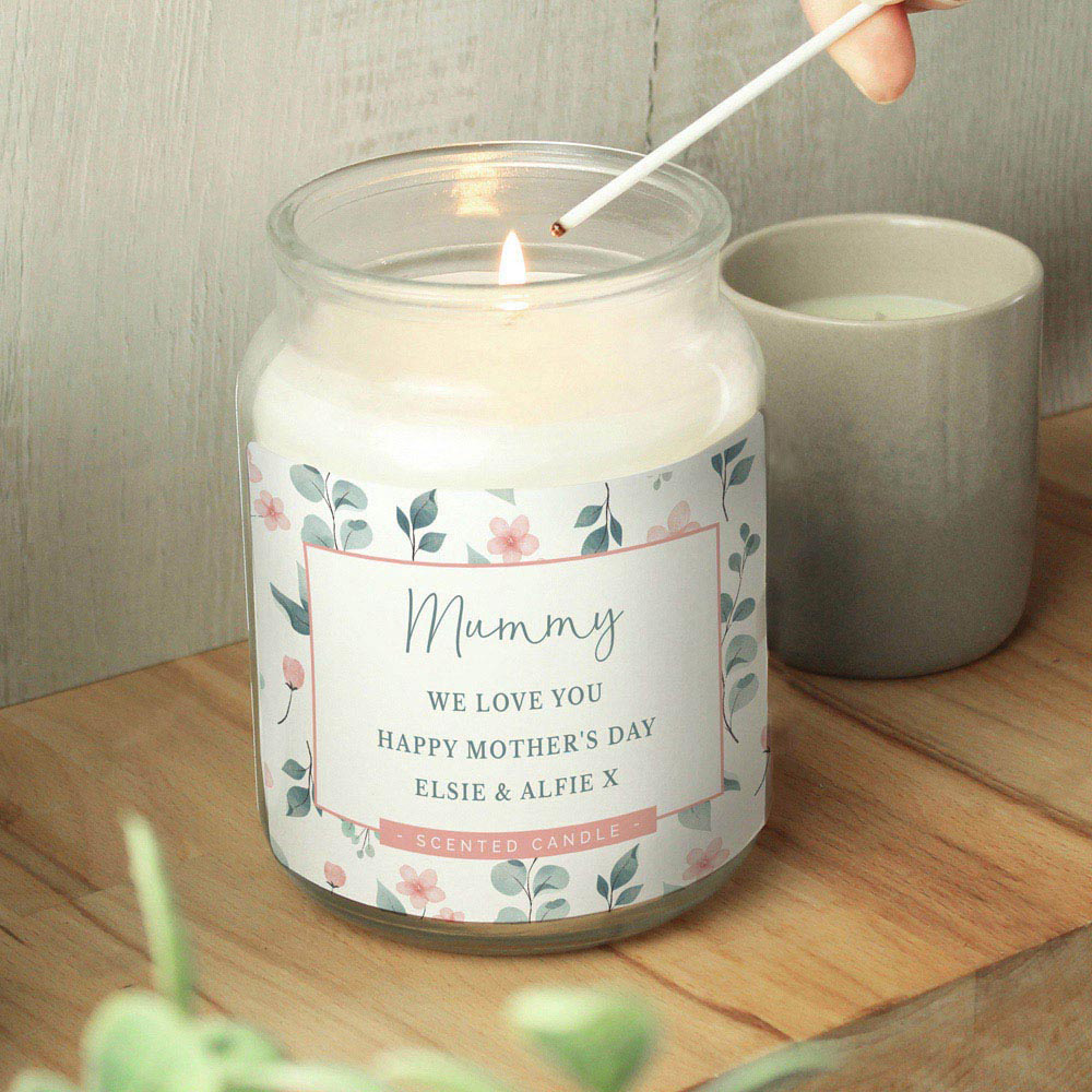 Personalised Memento Large Personalised Floral Scented Jar Candle