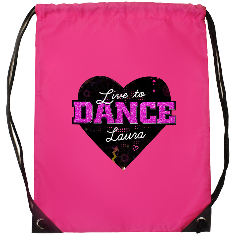 This Jazzy kit bag is a must have accessory for school PE or Dance Lessons! With this, they're sure never to misplace their kit again. Personalise this kit bag with a name up to 12 characters. Please avoid using block capitals as this may make the personalisation hard to read. 'Live to Dance' is fixed text. Drawstring closure which doubles as shoulder straps. Drawstring closure which doubles as shoulder straps. Polyester Kit Bag with reinforced corners and gunmetal eyelets. Capacity 11 litres. Ideal for Dance, Stage School, Back to School, Gym Bags, Kit Bags. After placing your order, an email will be sent with a link to submit your personalised details, please complete this within 24 hours to avoid cancellation. If the email isn’t in your inbox, kindly check your junk or spam folder. Once submitted, the order moves straight into production and cannot be changed or cancelled, and it will be dispatched within three working days.