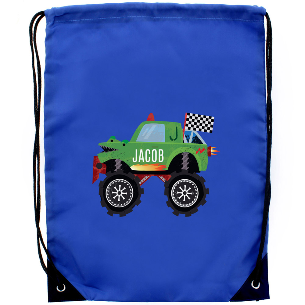 Be the king of the road with this personalised Monster Truck blue kit bag. This fun and colourful Monster Truck kit bag is a must have accessory for a little boy. With this vibrant bag, they're sure to never misplace their kit again. A child's name will feature on this mega cool truck. The initial of the name will also feature automatically on the design. Personalise the bag with a name of up to 12 characters long. The name will appear in uppercase. Drawstring closure which doubles as shoulder straps. Polyester Kit Bag with reinforced corners and gunmetal eyelets. Capacity 11 litres. Ideal for Nursery, Back to School, After School Clubs, Kit Bags. After placing your order, an email will be sent with a link to submit your personalised details, please complete this within 24 hours to avoid cancellation. If the email isn’t in your inbox, kindly check your junk or spam folder. Once submitted, the order moves straight into production and cannot be changed or cancelled, and it will be dispatched within three working days.