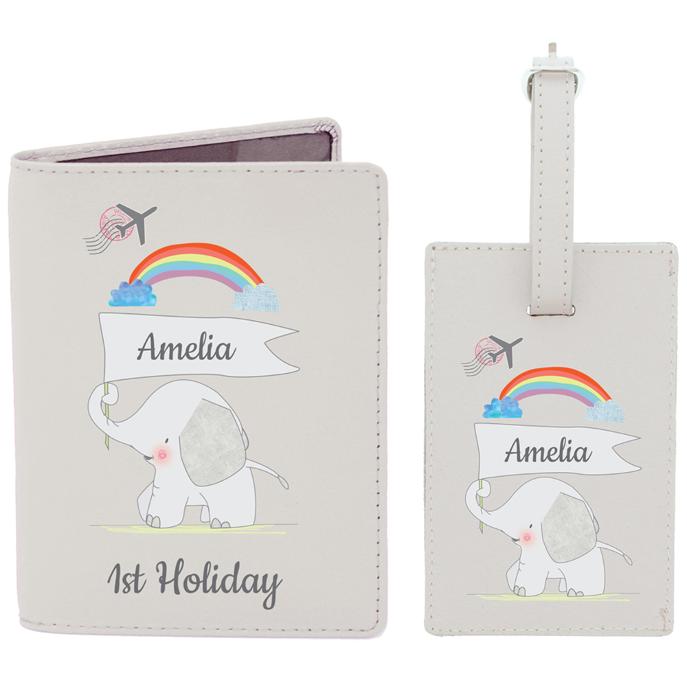 This cute Personalised Hessian Elephant Cream Passport Holder & Luggage Tag Set, makes for a precious keepsake. Please refrain from using fixed upper case as this may make the personalisation hard to read. This luggage tag fastens with a secure buckle and is ideal for attaching to the handle of a suitcase, rucksack or handbag. The tag also features a discreet identification window. The passport holder has two clear pockets inside to clearly display your passport. Both items are made from leather. Please note, as these are natural products, there may be some very slight variance in the colour of the leather. Perfect for New Baby, Holiday. After placing your order, an email will be sent with a link to submit your personalised details, please complete this within 24 hours to avoid cancellation. If the email isn’t in your inbox, kindly check your junk or spam folder. Once submitted, the order moves straight into production and cannot be changed or cancelled, and it will be dispatched within three working days.