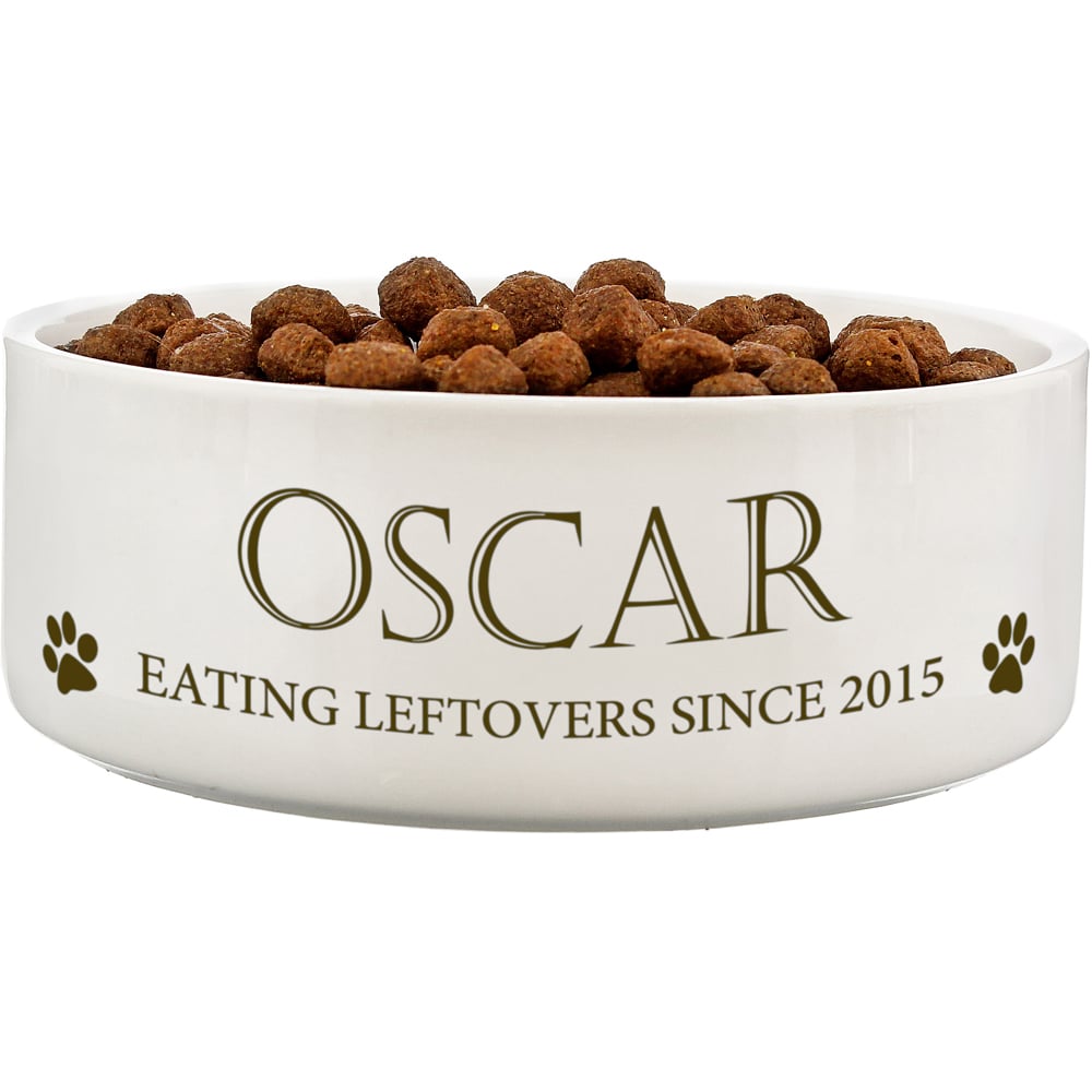 This fun and practical ceramic pet bowl is perfect for a pet's food or water. This Paws 14cm Medium White Pet Bowl can be personalised with a name up to 12 characters and a line of text up to 30 characters in length. All text will appear in upper case. The pet bowl is ceramic. Perfect for a pet's birthdays, Christmas or just a general treat.