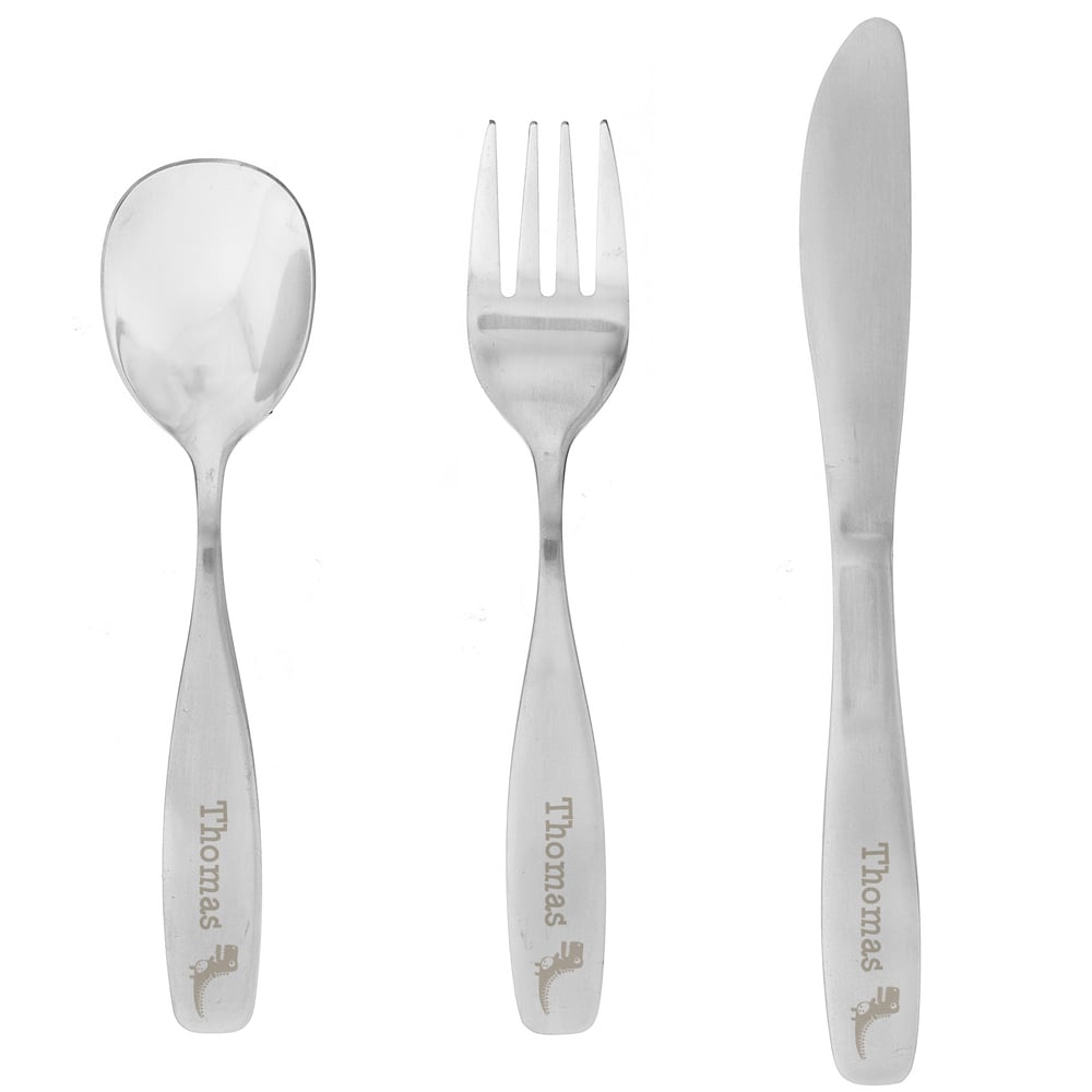 This 3 Piece Dinosaur Cutlery Set is a great gift for any dinosaur mad child. This stainless steel cutlery set can be personalised with any name up to 15 characters. All personalisation will appear as entered. Please refrain from using block capitals as this can make the personalisation hard to read. Please note - Not suitable for children under 36 months. Cutlery measurements Fork 14.2cm Knife 16.8cm Spoon 13.7cm Ideal for Birthday, Christening, Confirmation, Naming Day, Baptism. When you have placed your order, you will receive an email containing a link to personalise your item. Follow the link to submit the personalised details you require. If we don't receive your personalisation within 24 hours the order will be cancelled. Please check your junk folder for the email. Once personalisation has been submitted the order cannot be cancelled or amended as it will automatically be sent into production and will be despatched within 3 working days.