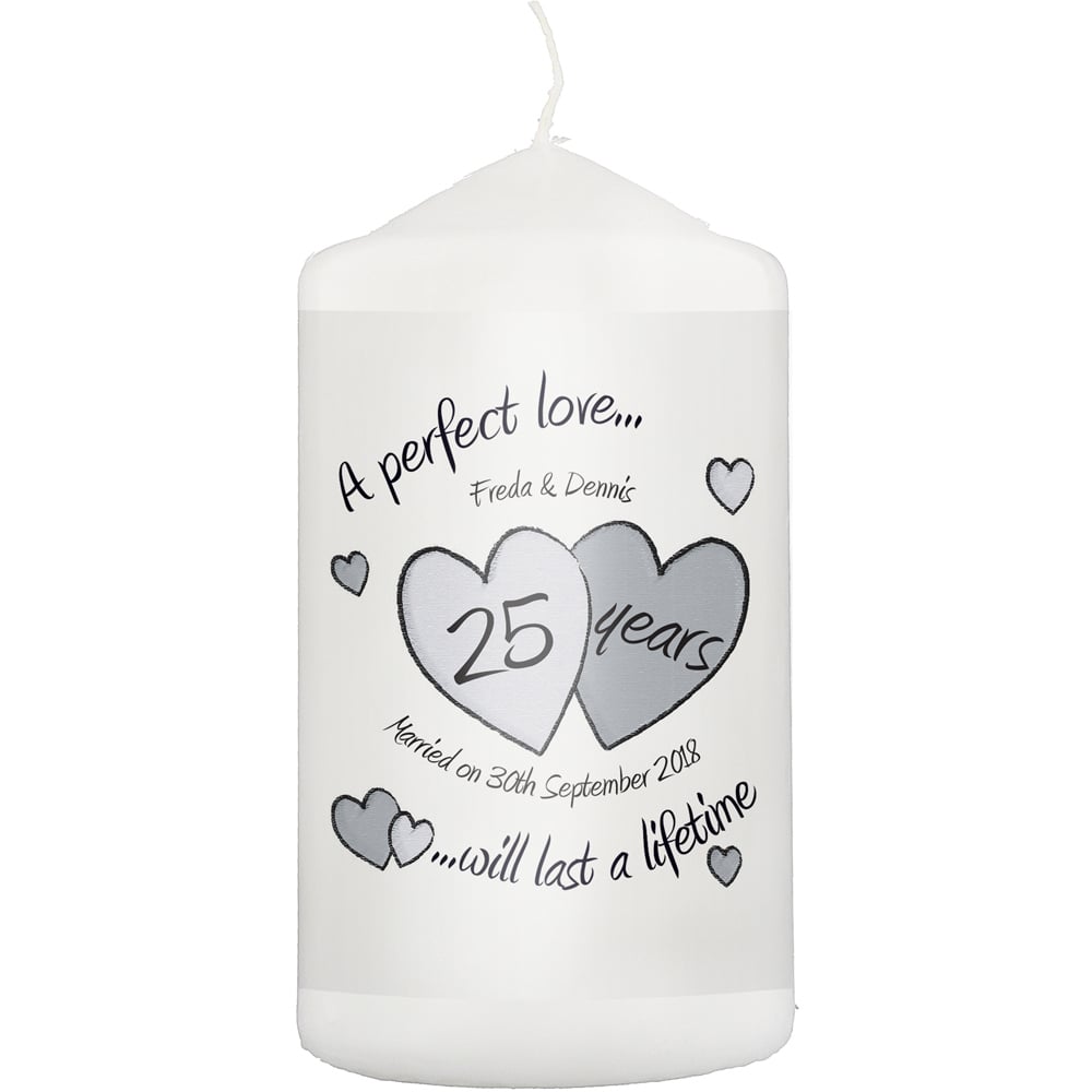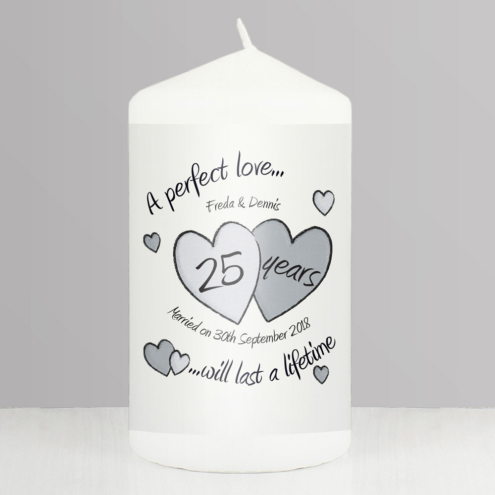 Personalised Memento Personalised A Perfect Love Silver Anniversary Pillar Candle
