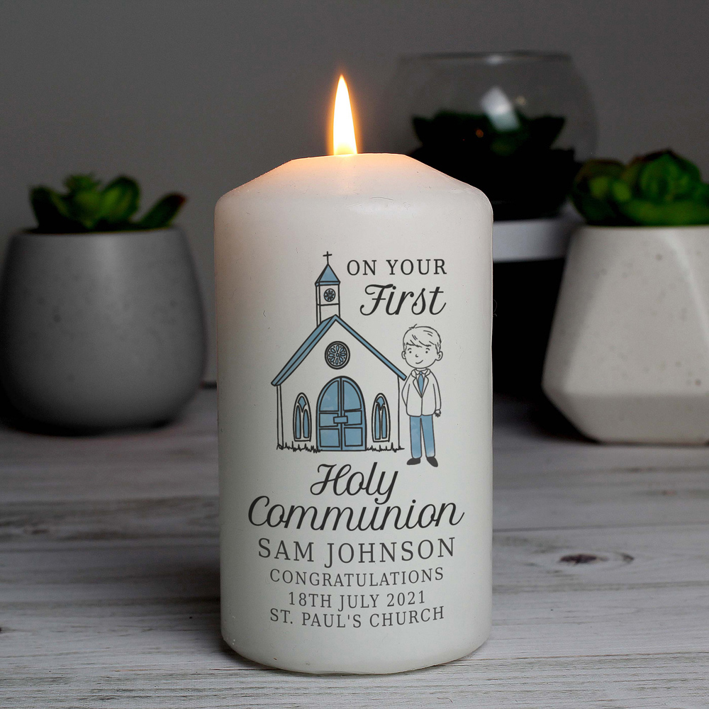 Personalised Memento Personalised Boys First Holy Communion Pillar Candle