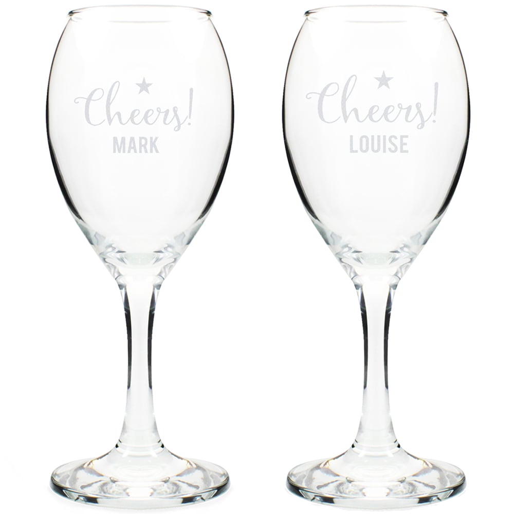 Sharing a glass of wine with your other half is an ideal way to relax after a stressful day. Both of these personalised Cheers Wine Glasses can be personalised with two names up to 12 characters each. One name will appear on each glass. Please note that all personalisation will appear in upper case. This item comes presented in a silver folding gift box. Ideal for Weddings, Anniversaries, Valentine's and Couples. When you have placed your order, you will receive an email containing a link to personalise your item. Follow the link to submit the personalised details you require. If personalisation is not received within 24 hours the order will be cancelled. Please check your junk folder for the email. Once personalisation has been submitted the order cannot be cancelled or amended as it will automatically be sent into production and will be despatched within three working days.