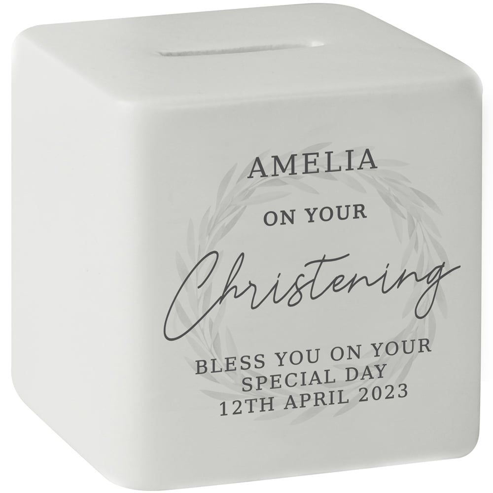 Personalised Memento Personalised Christening Ceramic Square Money Box