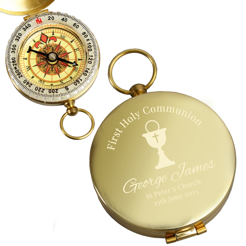 This functional keepsake compass makes the perfect gift for a 1st Holy Communion! This personalised compass can be personalised with the following: Line 1 - 12 characters long (as entered), Line 2 - 25 characters long (as entered), Line 3 - 25 characters long (as entered). The personalisation will appear exactly as entered please avoid using fixed uppercase on line one as this may make the personalisation distorted. "First Holy Communion" is a fixed text and cannot be changed. Please note that this product has a brushed metal effect. Perfect for 1st Holy Communions. When you have placed your order, you will receive an email containing a link to personalise your item. Follow the link to submit the personalised details you require. If we don't receive your personalisation within 24 hours the order will be cancelled. Please check your junk folder for the email. Once personalisation has been submitted the order cannot be cancelled or amended as it will automatically be sent into production and will be despatched within 3 working days.