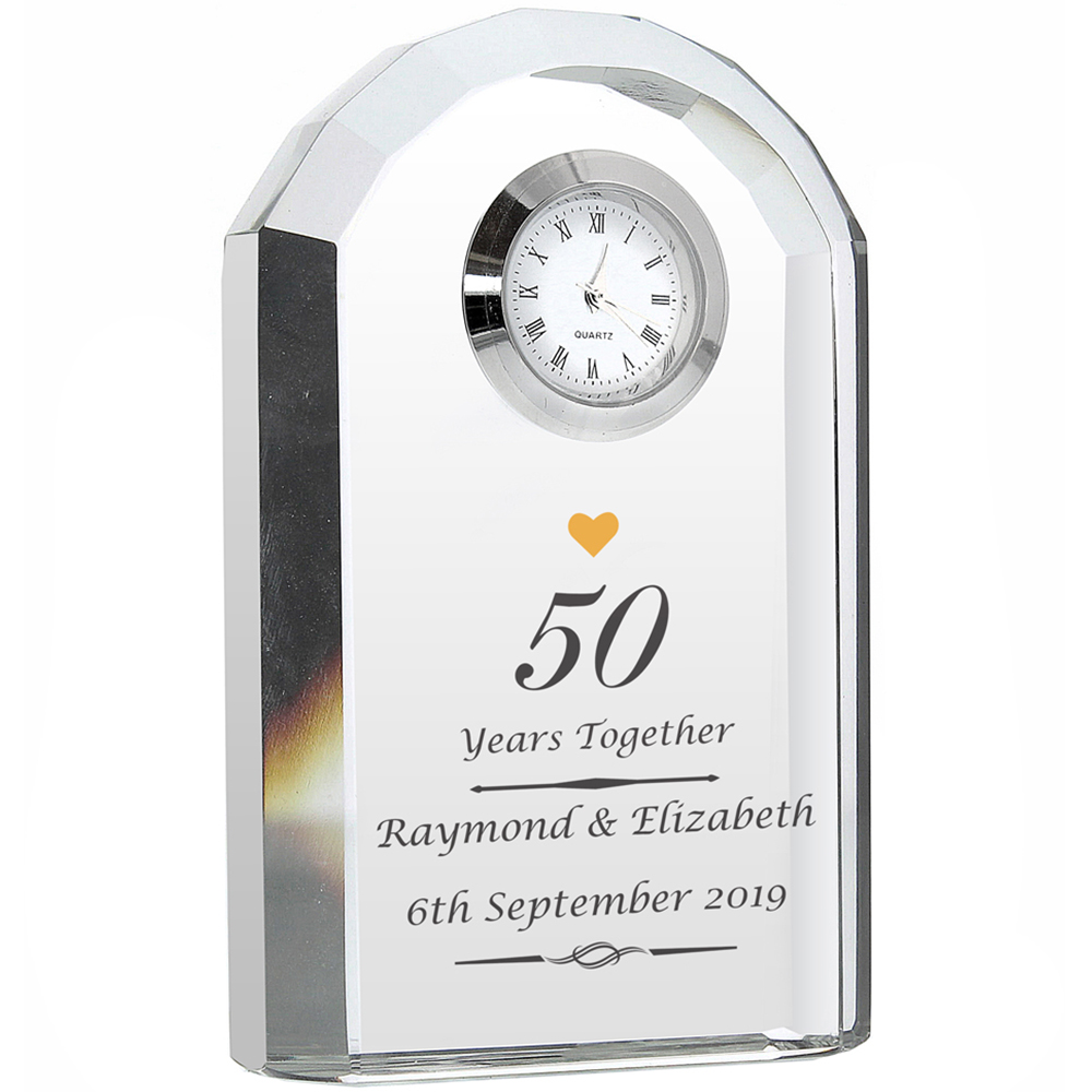 Personalised Memento Personalised Golden Anniversary Crystal Clock