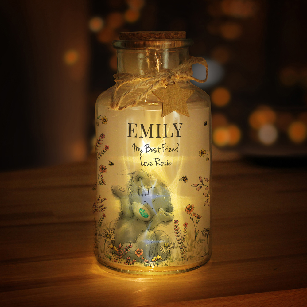 This beautiful personalised Me to You floral LED glass jar is a perfect gift for that special someone. Personalise this LED Glass Jar with their name and a special message from you over 2 lines of 25 characters. The name will appear in fixed upper case. All other personalisation is case sensitive and will appear as entered. The jar is 16.5cm tall and 8.5cm wide and takes 3 x LR44 batteries which are included. The material of this jar is glass. When you have placed your order, you will receive an email containing a link to personalise your item. Follow the link to submit the personalised details you require. If we don't receive your personalisation within 24 hours the order will be cancelled. Please check your junk folder for the email. Once personalisation has been submitted the order cannot be cancelled or amended as it will automatically be sent into production and will be despatched within 3 working days.