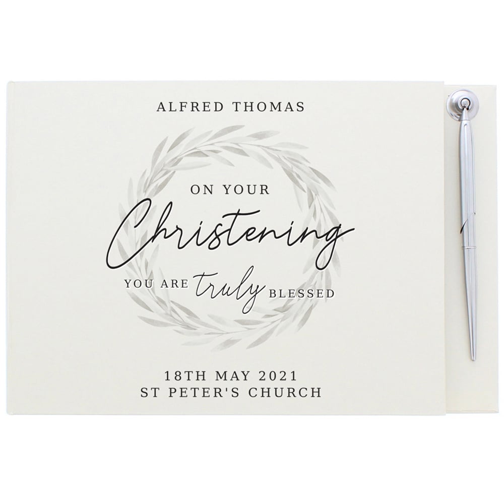 Personalised Memento Personalised Truly Blessed Christening Hardback Guest Book and Pen
