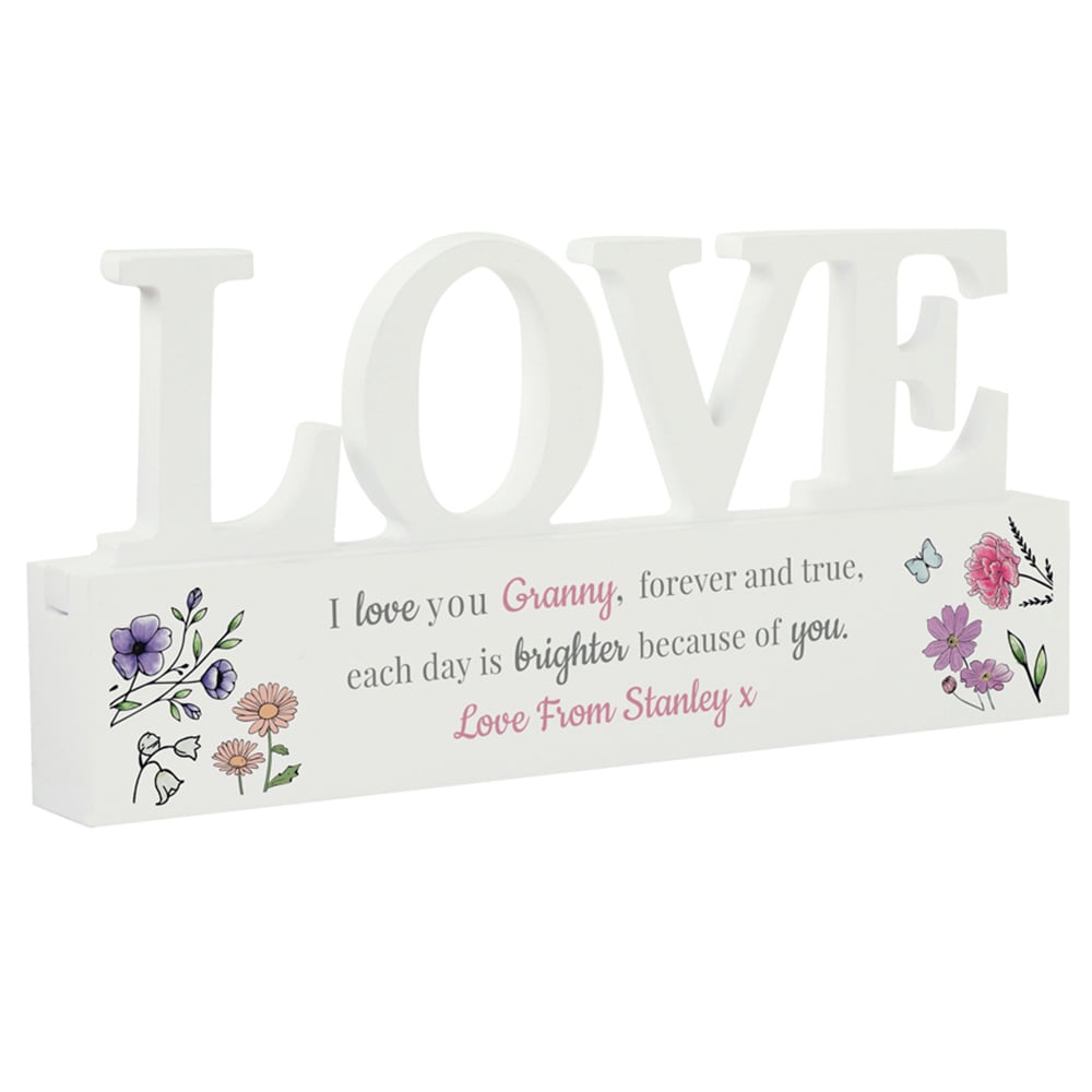 Elevate your home decor with our charming Personalised Wild Flowers LOVE Ornament. Handcrafted from wood, this unique piece is designed to capture the rustic beauty of nature. Delicate wildflower illustrations adorn the ornament, bringing a touch of the outdoors into your living space. Personalise this ornament with a name and a message line of up to 30 characters. All personalisation is case sensitive and will appear as entered. Please note that this is a wooden handmade item so there may be slight imperfections. Ideal for any occasion *When you have placed your order, you will receive an email containing a link to personalise your item. Follow the link to submit the personalised details you require. *If we don't receive your personalisation within 24 hours the order will be cancelled. Please check your junk folder for the email. *Once personalisation has been submitted the order cannot be cancelled or amended as it will automatically be sent into production and will be despatched within 3 working days.