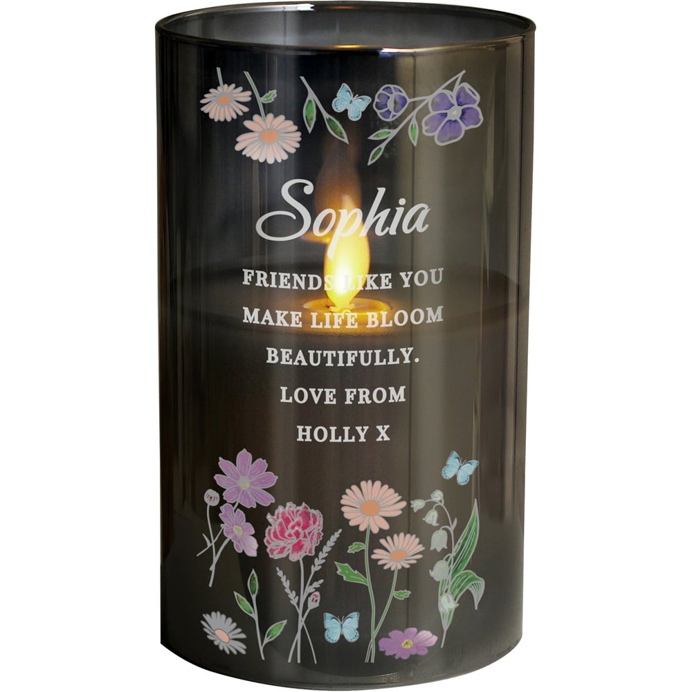 Bring the beauty of nature into your home with our exquisite Personalised Wild Flowers Glass LED Candle. This stunning piece combines the timeless charm of wildflowers with the modern convenience of an LED candle, creating a warm, inviting ambiance for any room. Personalise this candle with a name up to 12 characters and an additional 5 message lines, each containing up to 20 characters Please note, the personalisation on line 1 is case sensitive and will appear as entered, all other personalisation will appear in fixed UPPERCASE. Frosted glass with wax LED candle and a life like effect amber flame. Takes 2x AA batteries. Perfect for any Mother's Day and Birthday *When you have placed your order, you will receive an email containing a link to personalise your item. Follow the link to submit the personalised details you require. *If we don't receive your personalisation within 24 hours the order will be cancelled. Please check your junk folder for the email. *Once personalisation has been submitted the order cannot be cancelled or amended as it will automatically be sent into production and will be despatched within 3 working days.