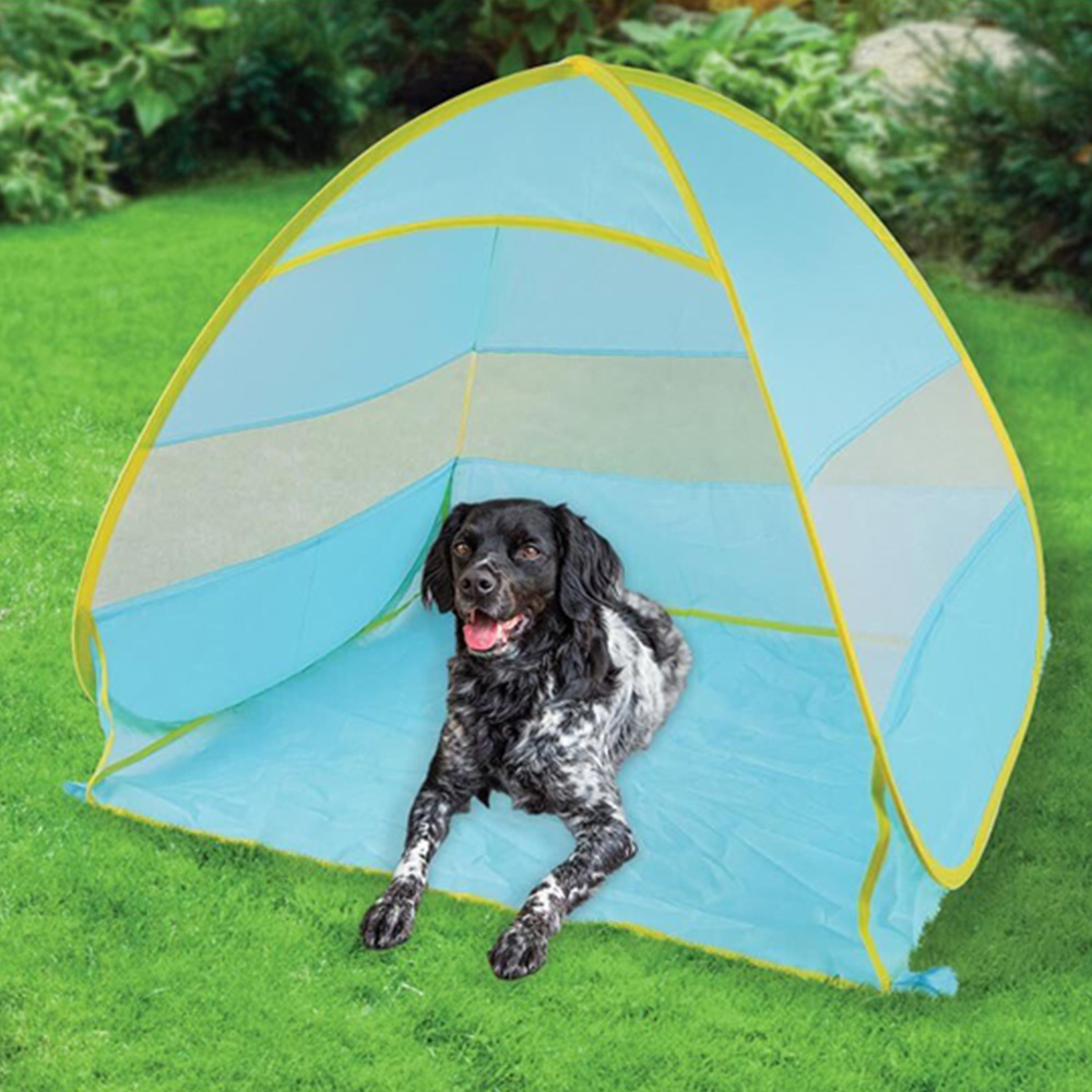 Keep your pet cool in the warmer months with this Pet Sun Shelter. Perfect for the beach, garden or anywhere you're out in the sun, this shelter easily pops up to provide cool shelter for your furry friend. It folds flat again for easy storage, so you can put it away until the sun comes out again!