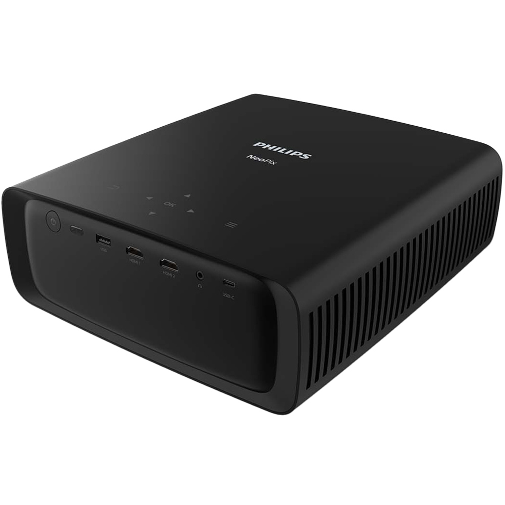 Experience unmatched clarity while getting entertained with the Philips NeoPix 530 HD Projector. It is the ultimate home cinema projector that delivers stunningly bright and colourful images. Its compact and silent design makes it the perfect addition to any room without any distracting noise. Experience true full HD 1080p resolution on a massive 100-inch screen bringing your favourite movies, TV shows and games to life like never before. It features a wide range of connectivity options including 2xHDMI, USB-C, and USB A. You can connect all your devices such as Apple TV, Amazon Fire Stick, laptops and even your smartphones. It also features vertical and horizontal keystone correction technology that eliminates any crooked or distorted images ensuring a perfectly proportioned picture every time, no matter where you place your projector. You will enjoy sensational sound for an immersive movie experience that will leave you breathless with a powerful 2.1 audio system, including two speakers and a subwoofer. Get ready to transform your living room into a cinema with this super silent HD projector.